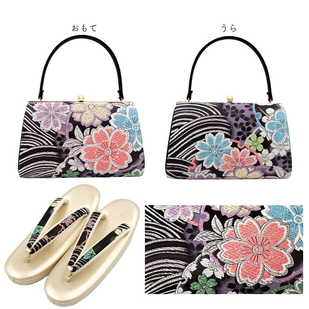 鮮やかな桜柄が可愛らしい草履バッグです。