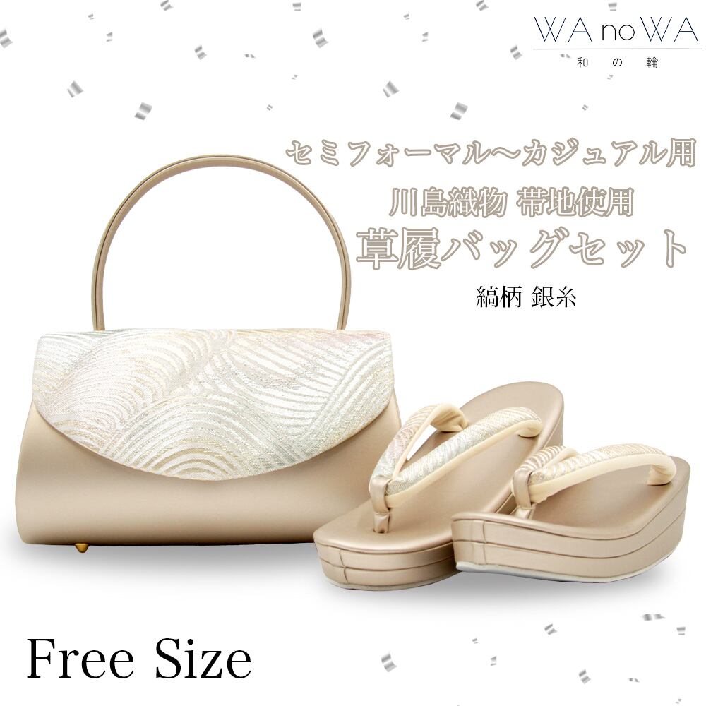 なめらかな合皮と川島織物の帯地が豪華な草履バッグセットです。