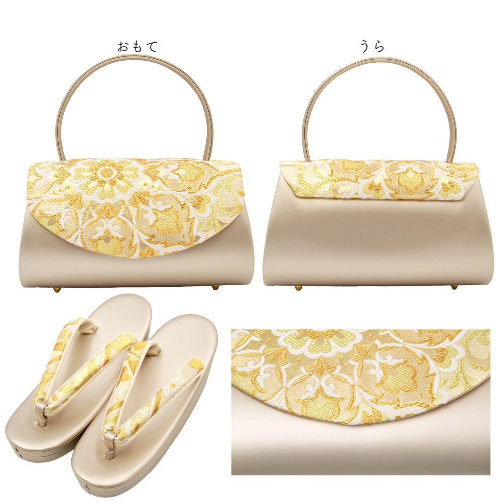 なめらかな合皮と川島織物の帯地が豪華な草履バッグセットです。
