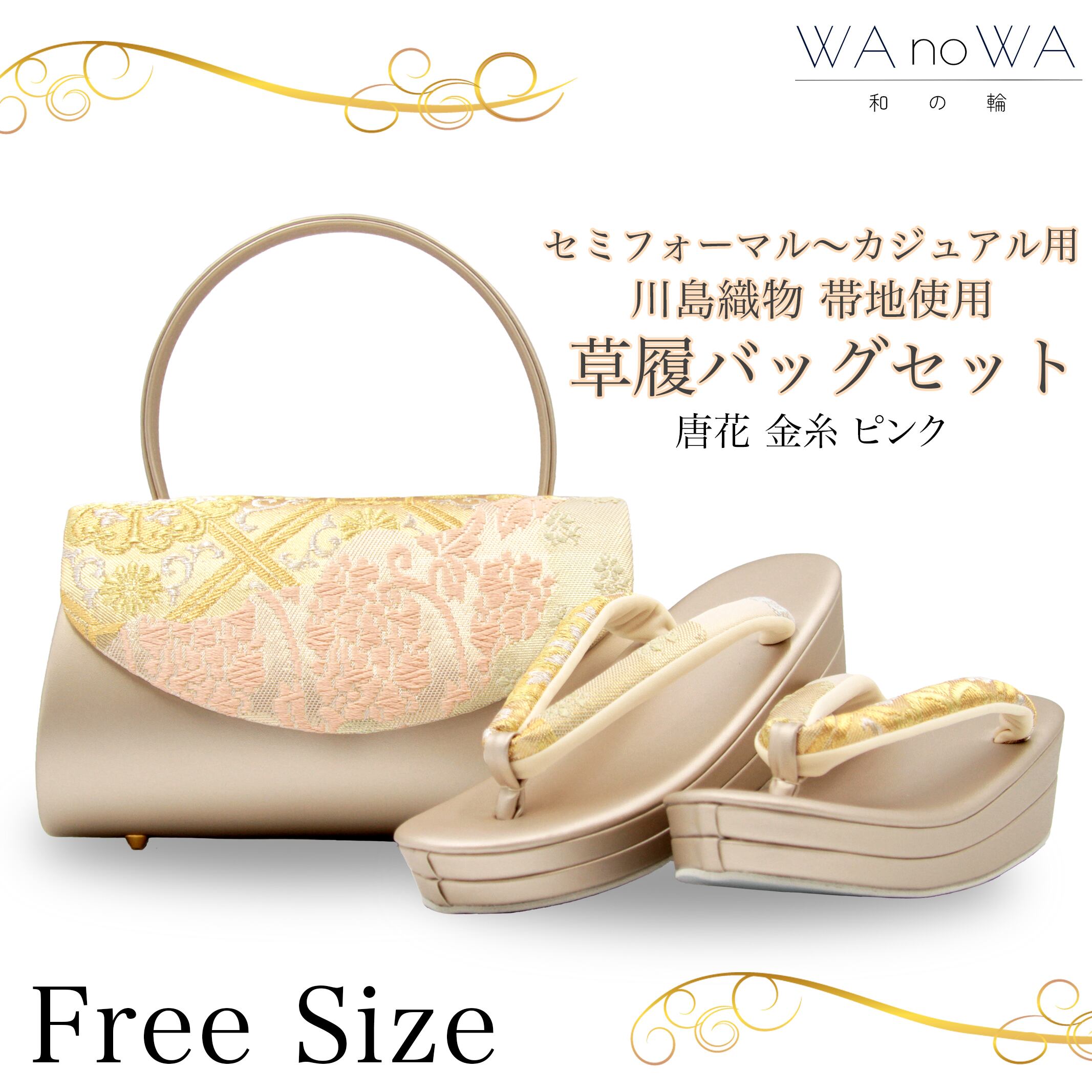 草履バッグ 草履バック 草履バッグセット 唐花 金糸 ピンク かぶせタイプ セミフォーマル カジュアル 小紋 紬 付け下げ 訪問着 フリ−サイズ WA-Z-206 | WA by Petal Prier