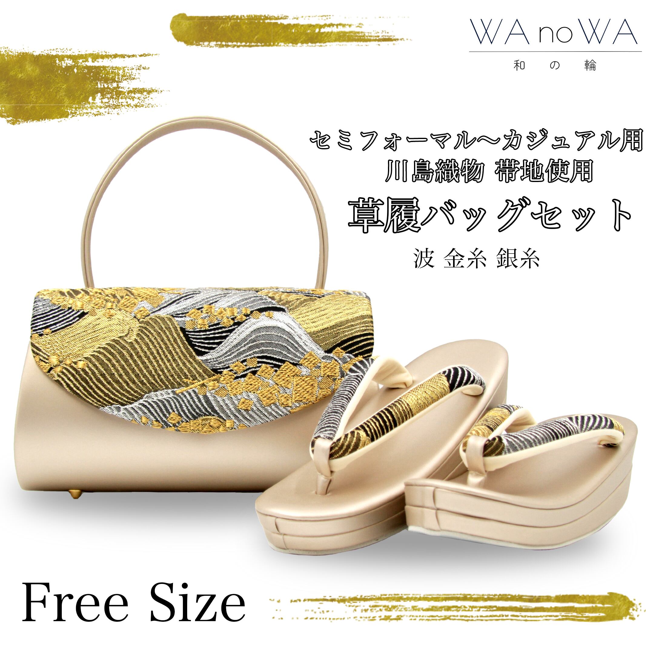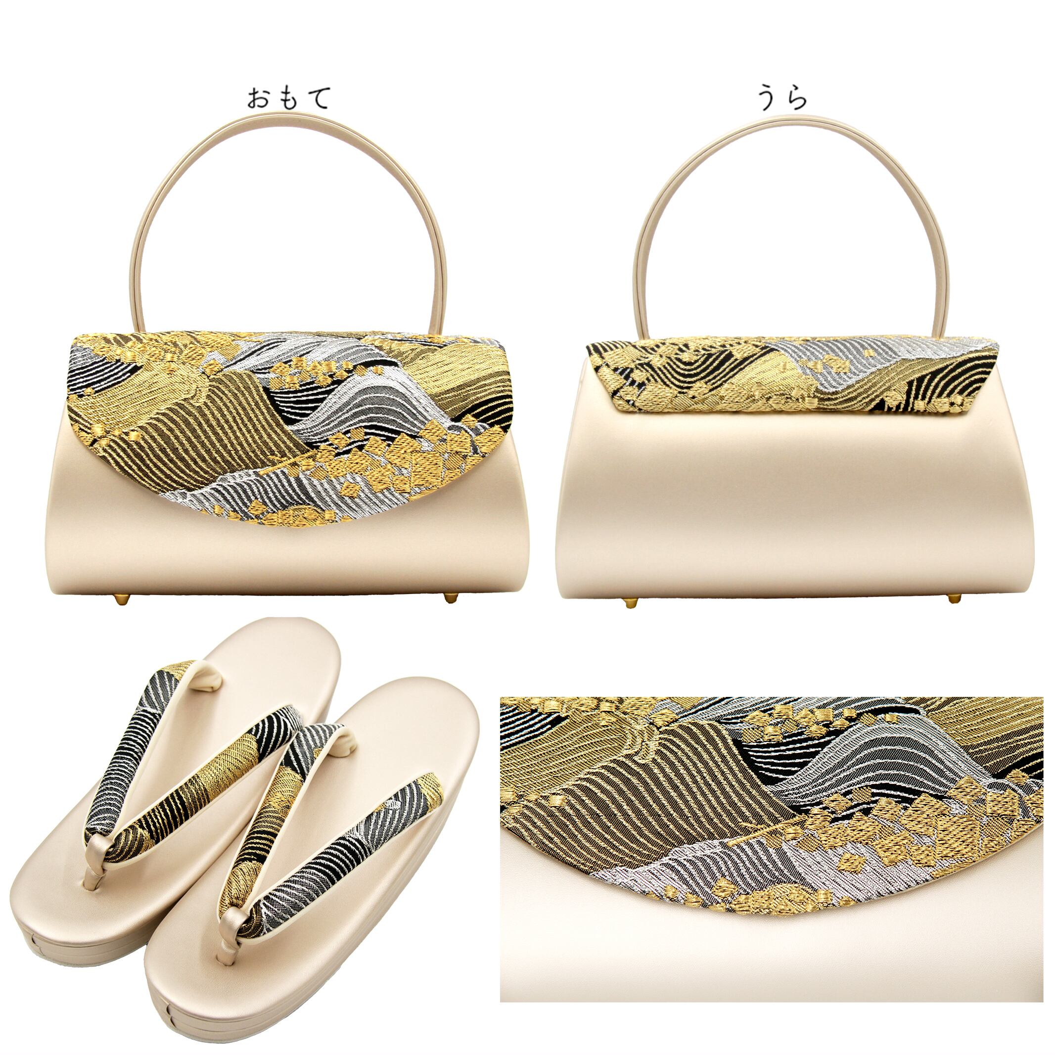 なめらかな合皮と川島織物の帯地が豪華な草履バッグセットです。