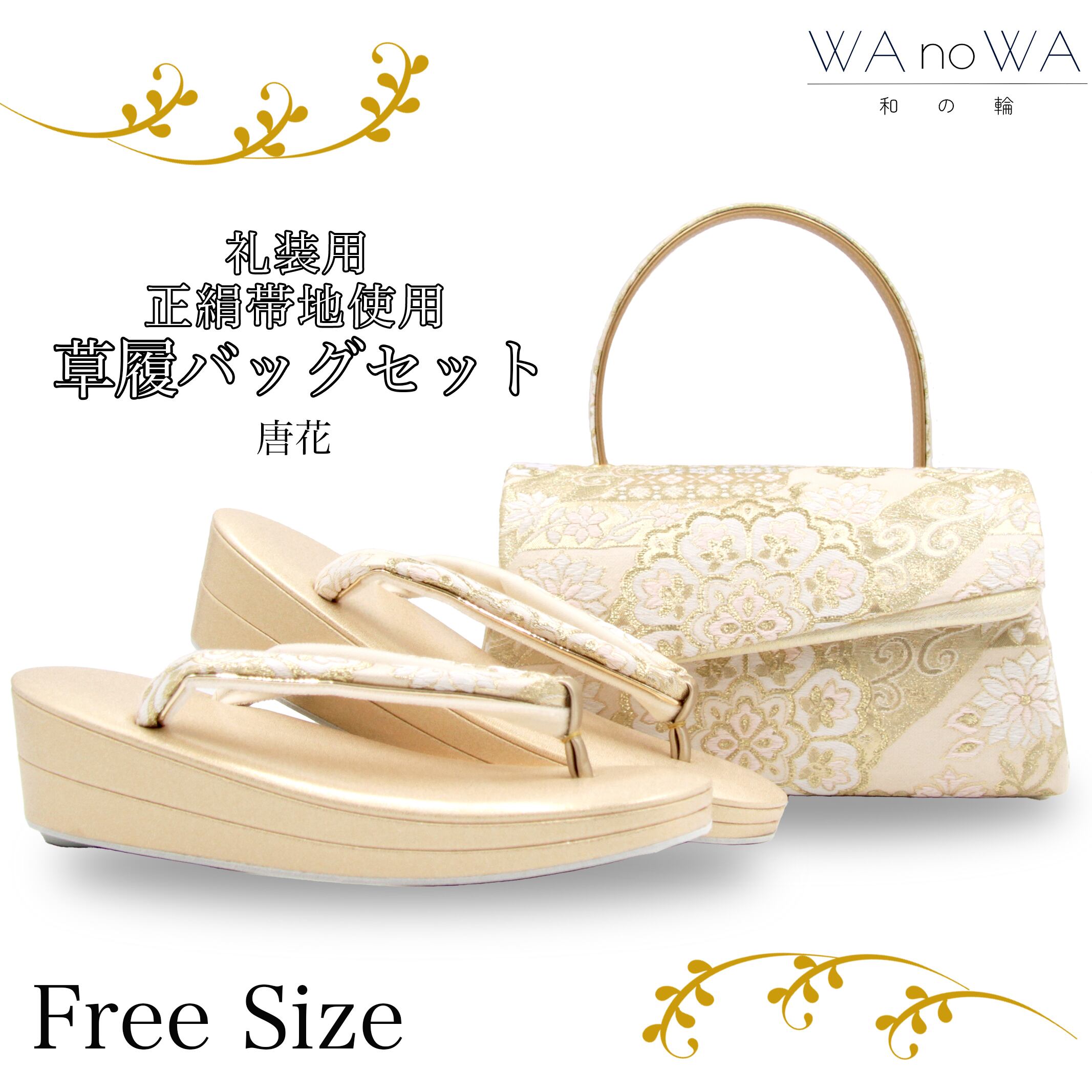 草履バッグ 草履バック 草履バッグセット 金銀糸 唐花 ゴールド 礼装用 黒留袖 色留袖 七五三 訪問着 結婚式 フリ−サイズ WA-Z-219