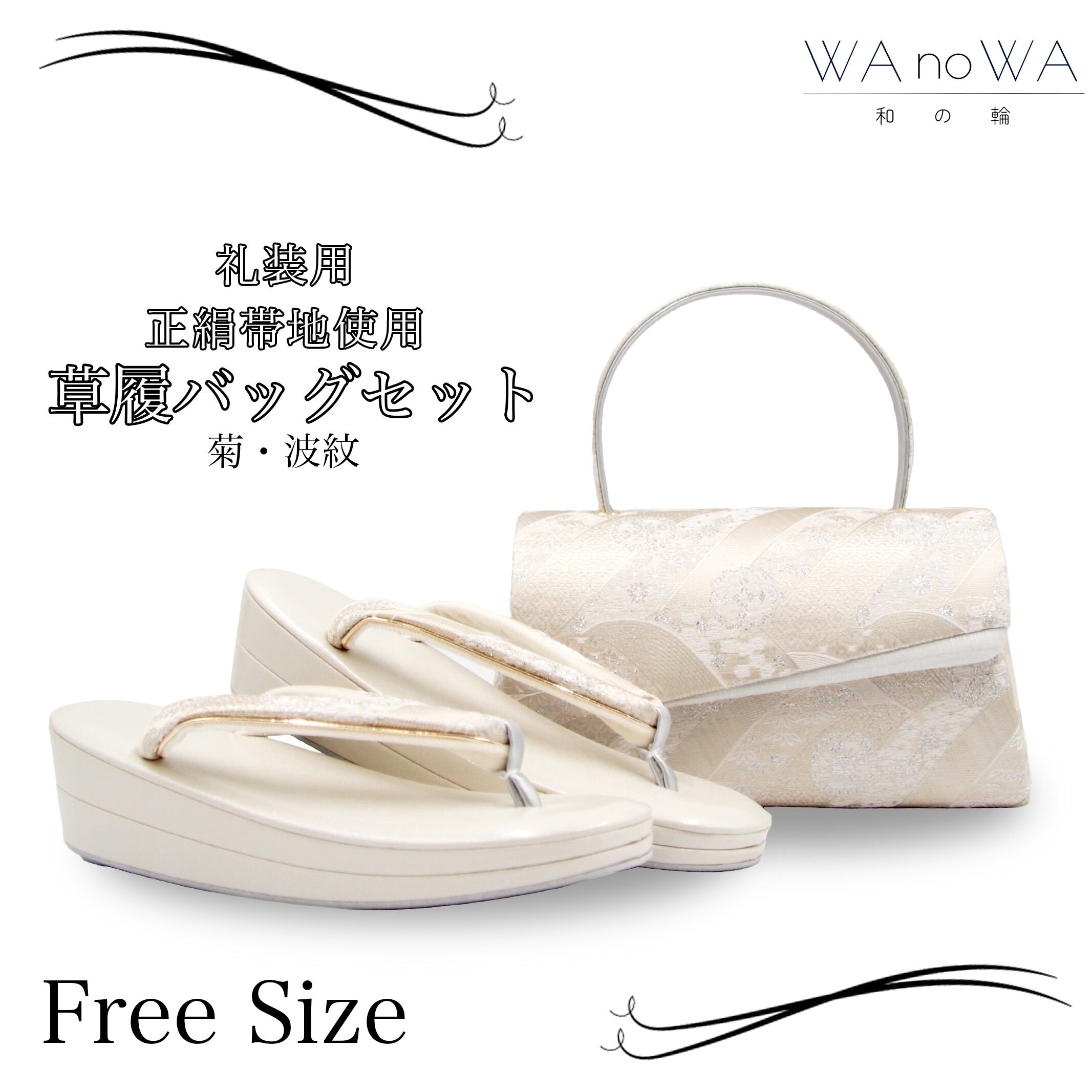草履バッグ 草履バック 草履バッグセット 銀糸 波紋 菊 シルバー 礼装用 黒留袖 色留袖 七五三 訪問着 結婚式 フリ−サイズ WA-Z-222