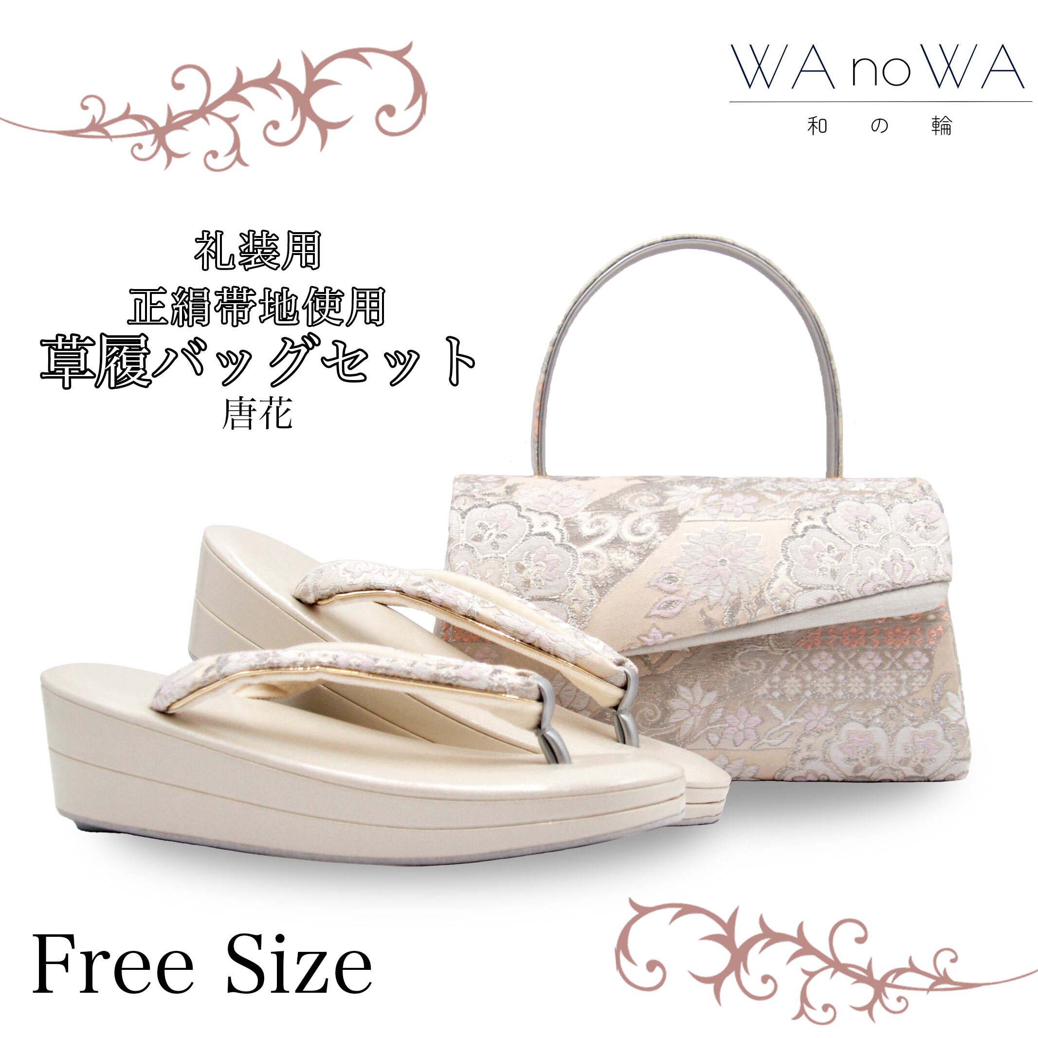 草履バッグ 草履バック 草履バッグセット 銀糸 唐花 シルバー 礼装用 黒留袖 色留袖 七五三 訪問着 結婚式 フリ−サイズ WA-Z-224