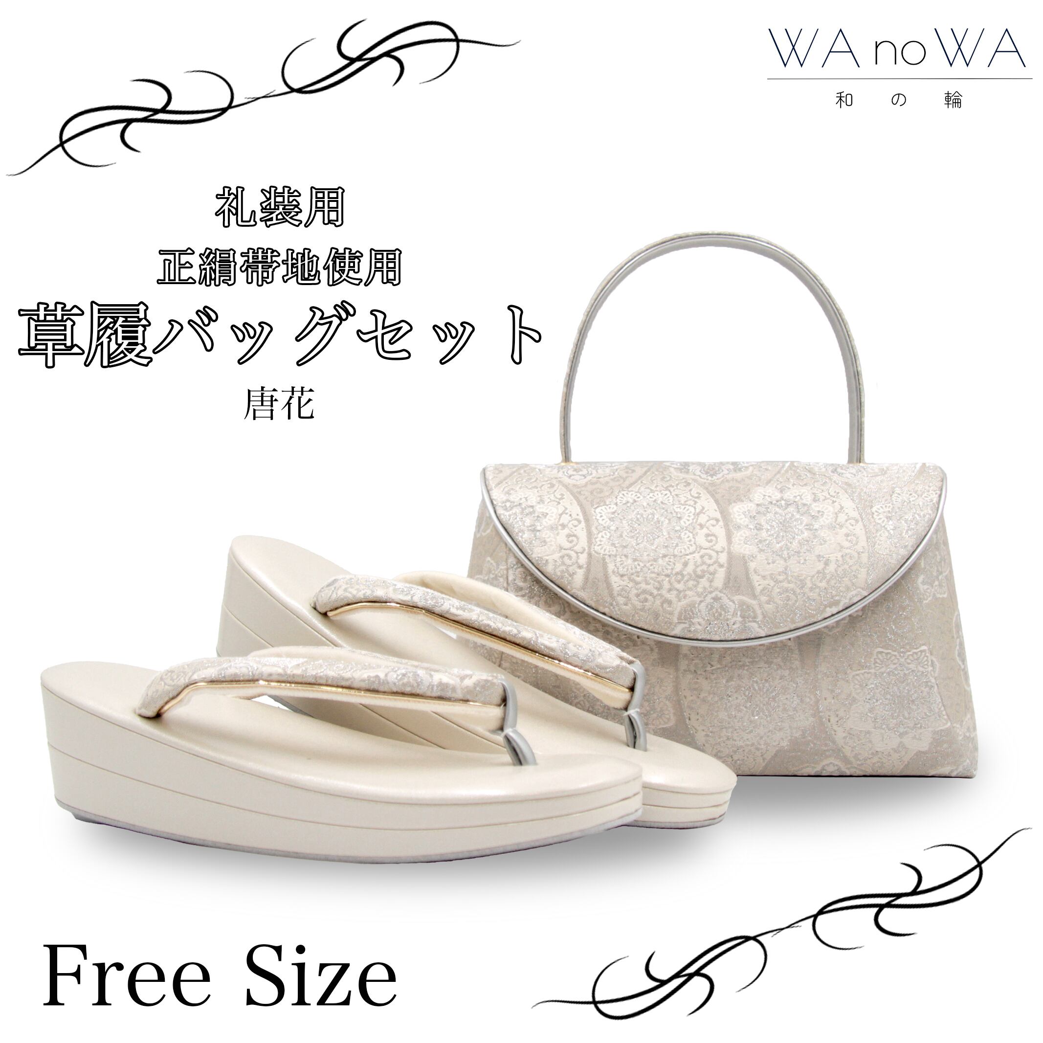 草履バッグ 草履バック 草履バッグセット 銀糸 唐花 シルバー 礼装用 黒留袖 色留袖 七五三 訪問着 結婚式 フリ−サイズ WA-Z-231
