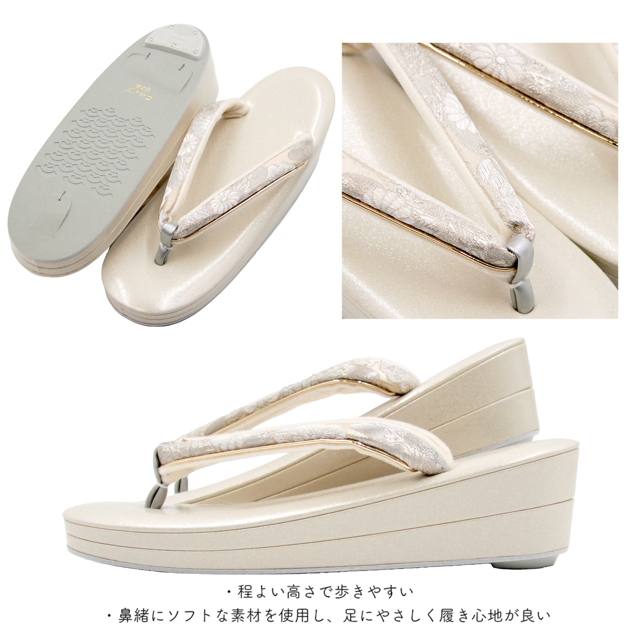 草履は鼻緒にソフトな素材を使用しているため、足にやさしく履き心地が良いです。