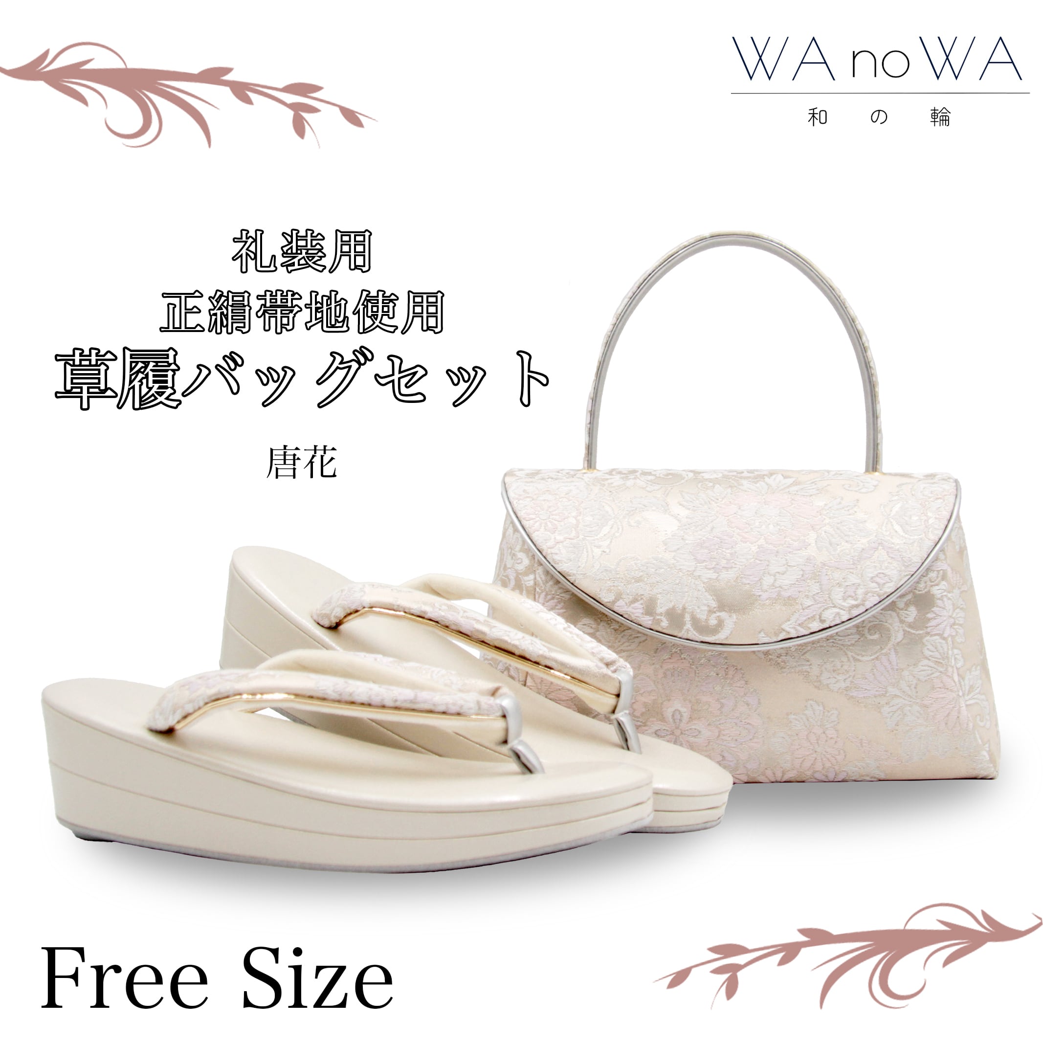 草履バッグ 草履バック 草履バッグセット 銀糸 唐花 シルバー 礼装用 黒留袖 色留袖 七五三 訪問着 結婚式 フリ−サイズ WA-Z-236