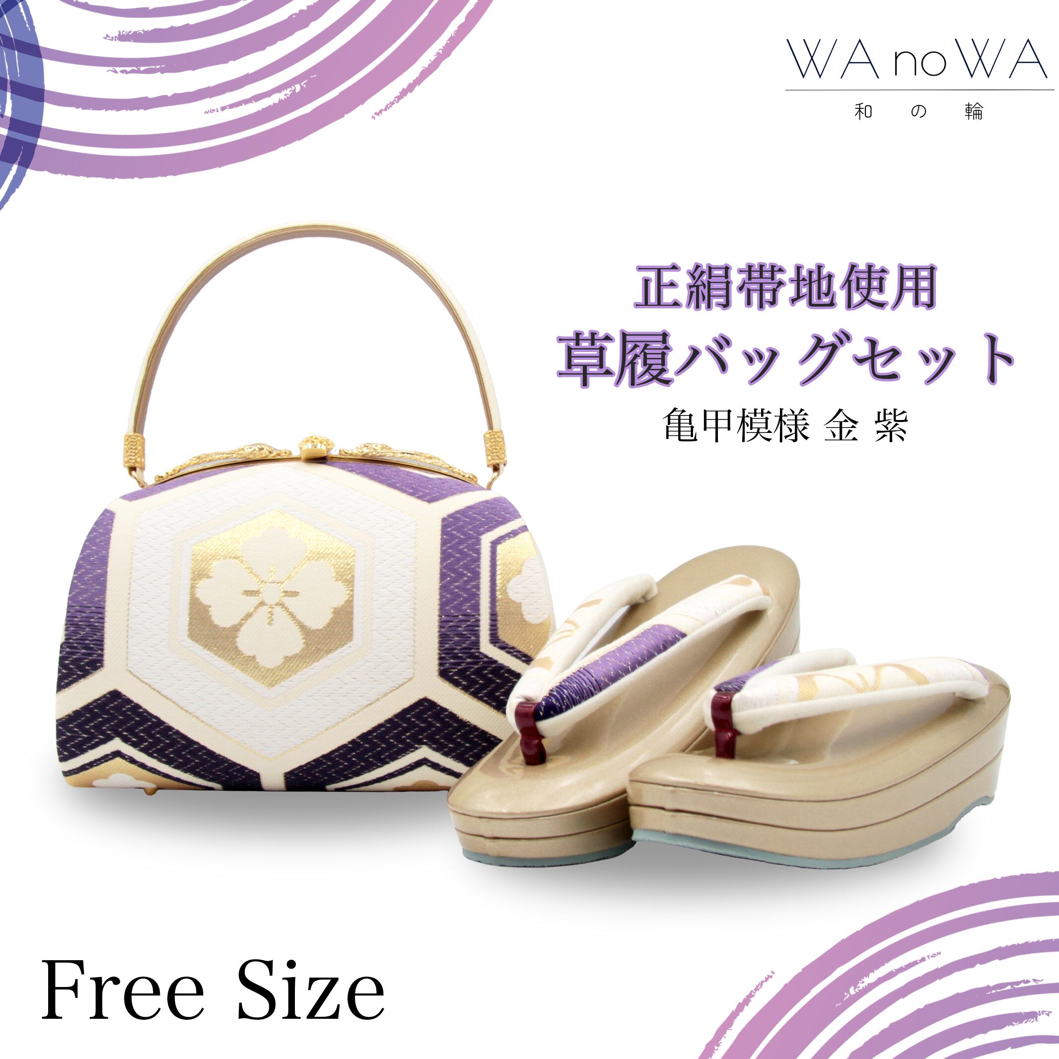 大胆な亀甲模様が高級感ある草履バッグセットです。