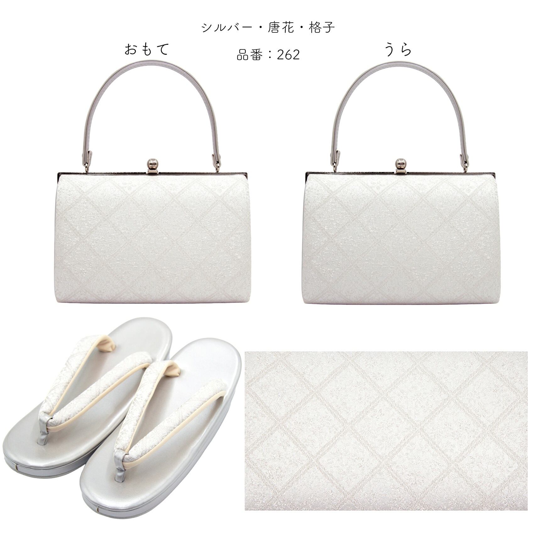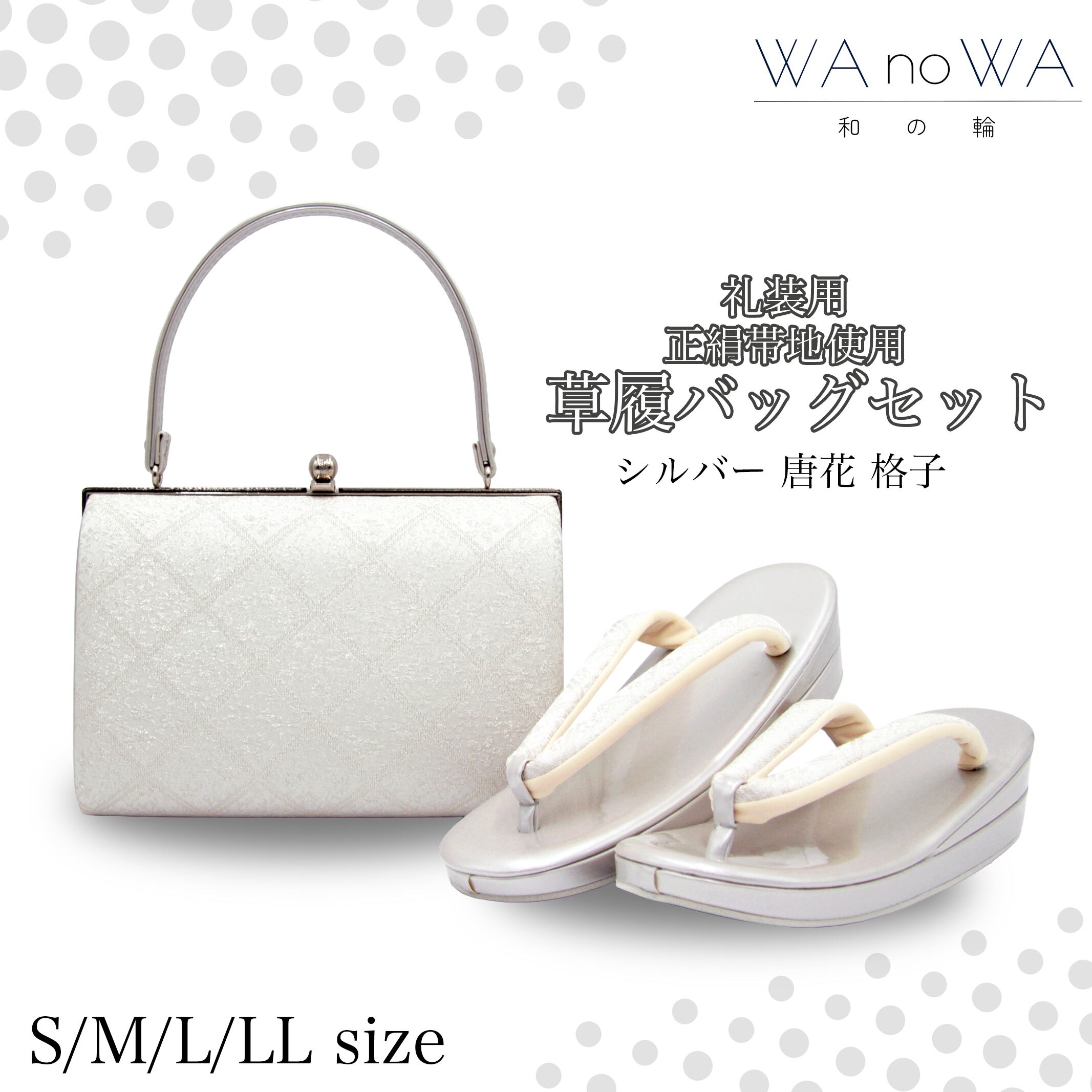 草履バッグ 草履バック 草履バッグセット 唐花 格子 シルバー 正絹帯地 フォーマル用 黒留袖 色留袖 七五三 訪問着 結婚式 Sサイズ Mサイズ フリー Fサイズ LLサイズ WA-Z-262 | WA by Petal Prier