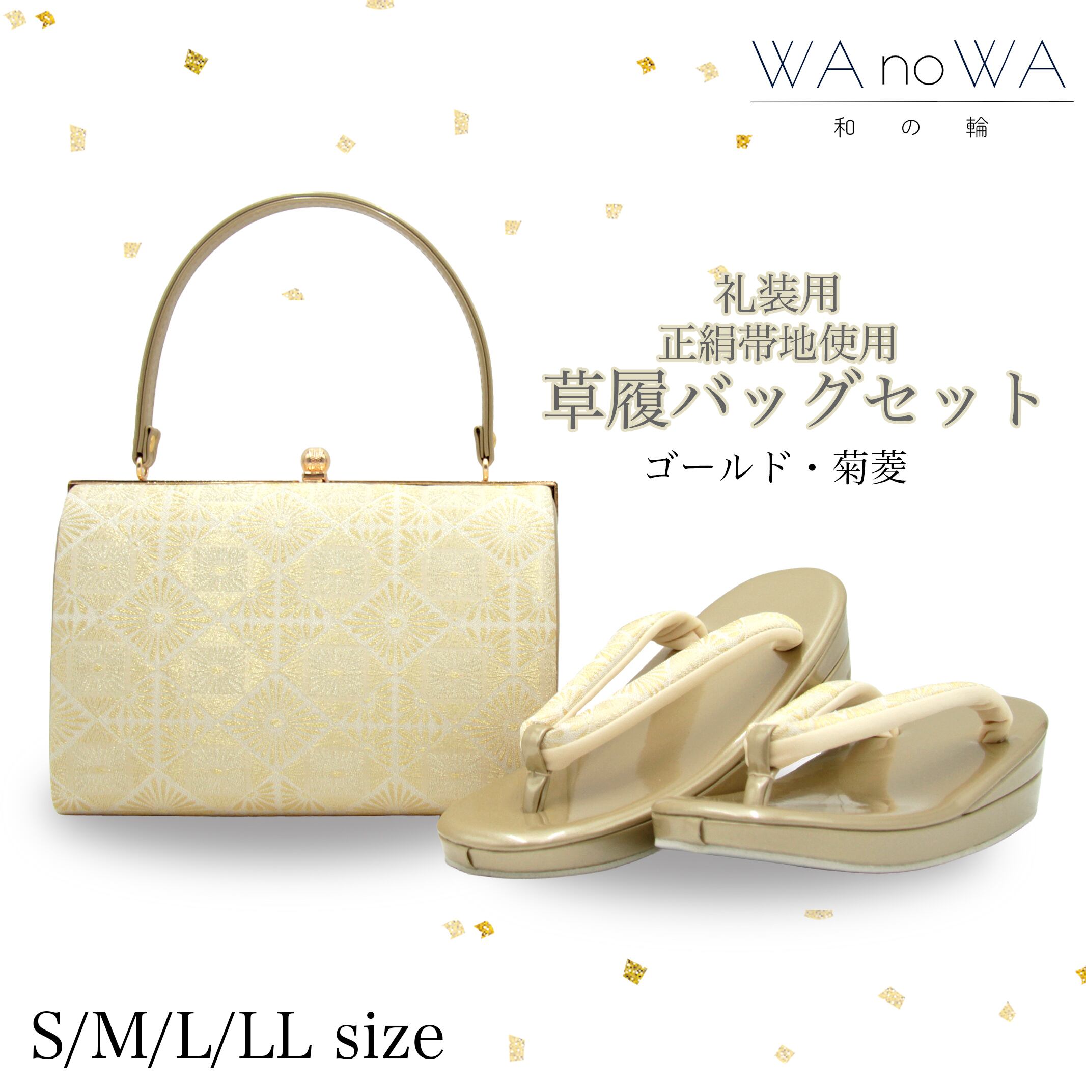 草履バッグ 草履バック 草履バッグセット 菊菱 ゴールド 正絹帯地 フォーマル用 黒留袖 色留袖 七五三 訪問着 結婚式 Sサイズ Mサイズ フリー Fサイズ LLサイズ WA-Z-264 | WA by Petal Prier