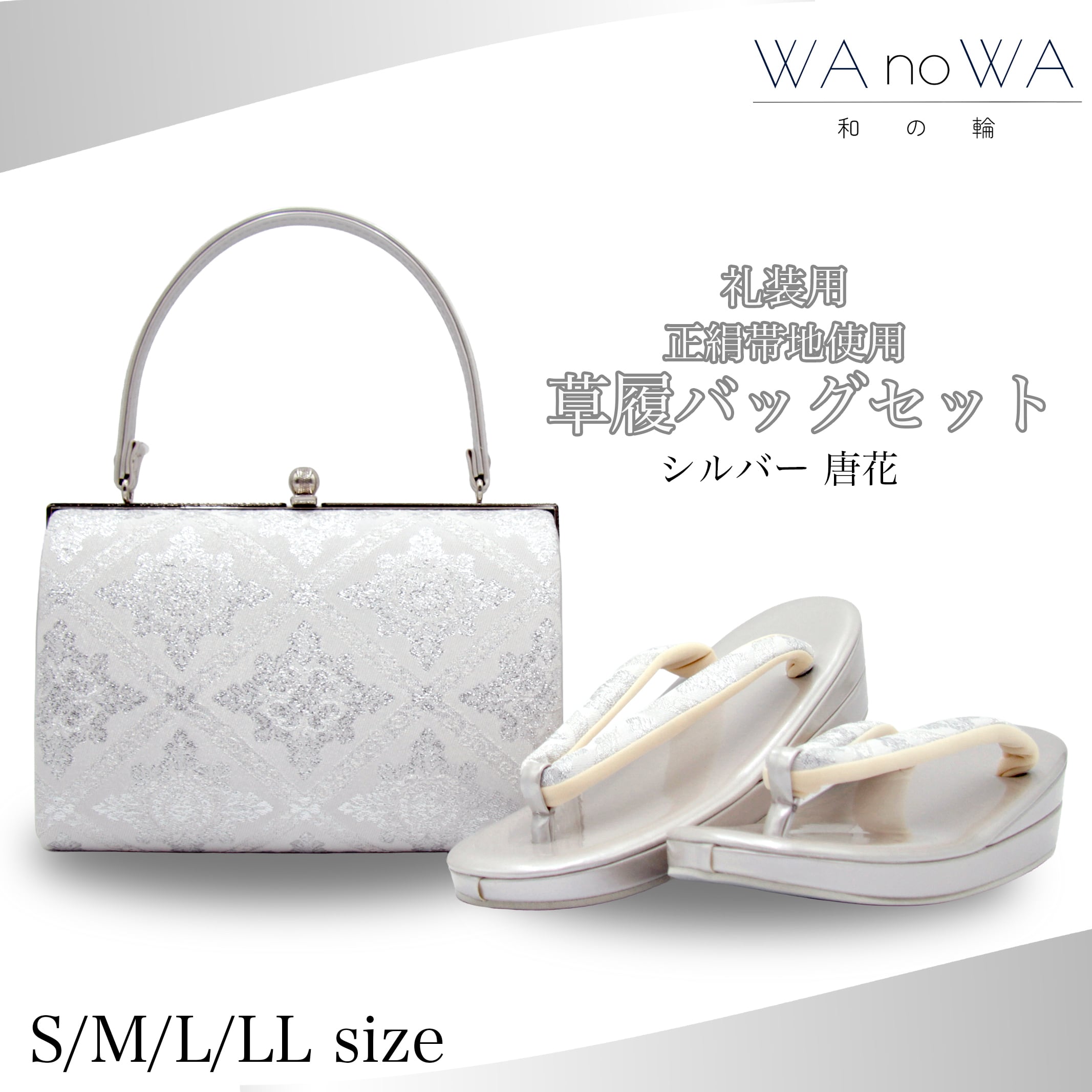 草履バッグ 草履バック 草履バッグセット 唐花 シルバー 正絹帯地 フォーマル用 黒留袖 色留袖 七五三 訪問着 結婚式 Sサイズ Mサイズ フリー Fサイズ LLサイズ WA-Z-267 | WA by Petal Prier