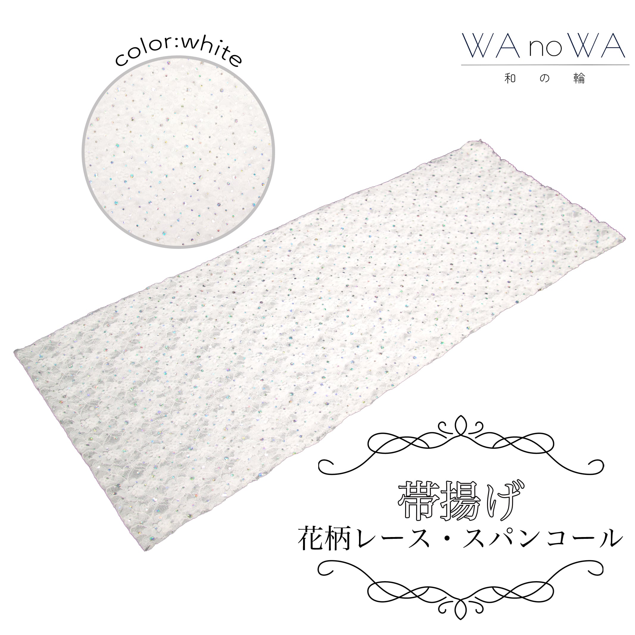 花柄レースにスパンコールがガーリーな帯揚げです。