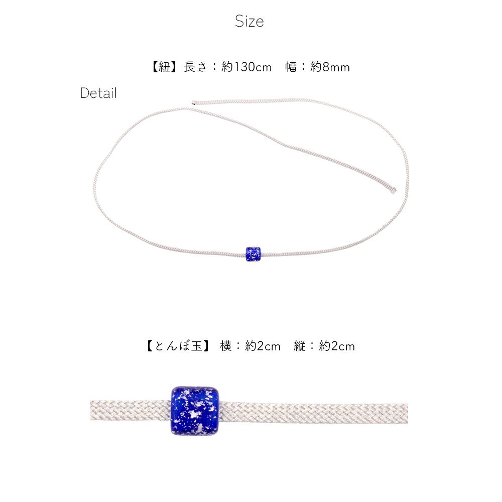 とんぼ玉は取り外しができるため、お好きな三部紐を通してアレンジすることも可能です。