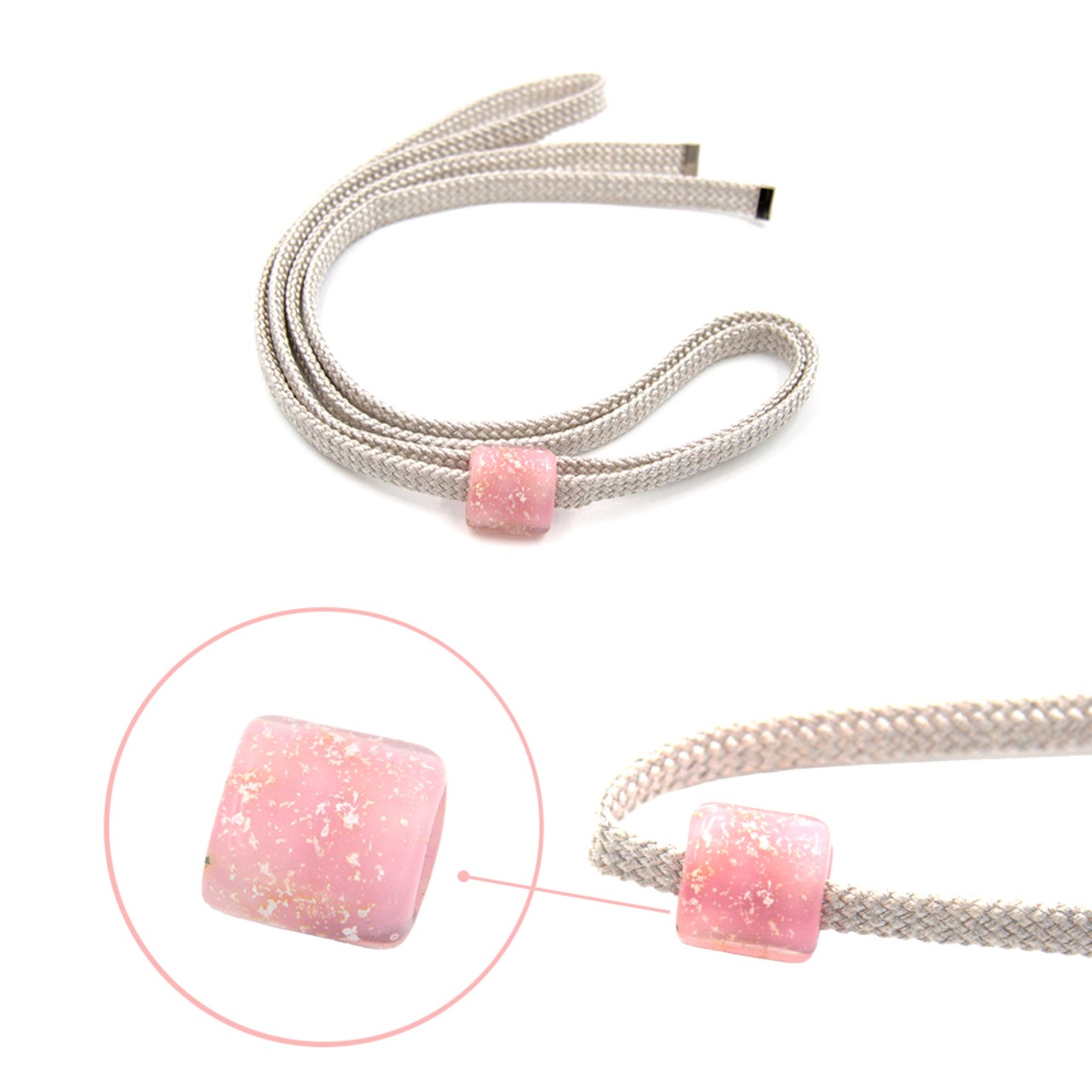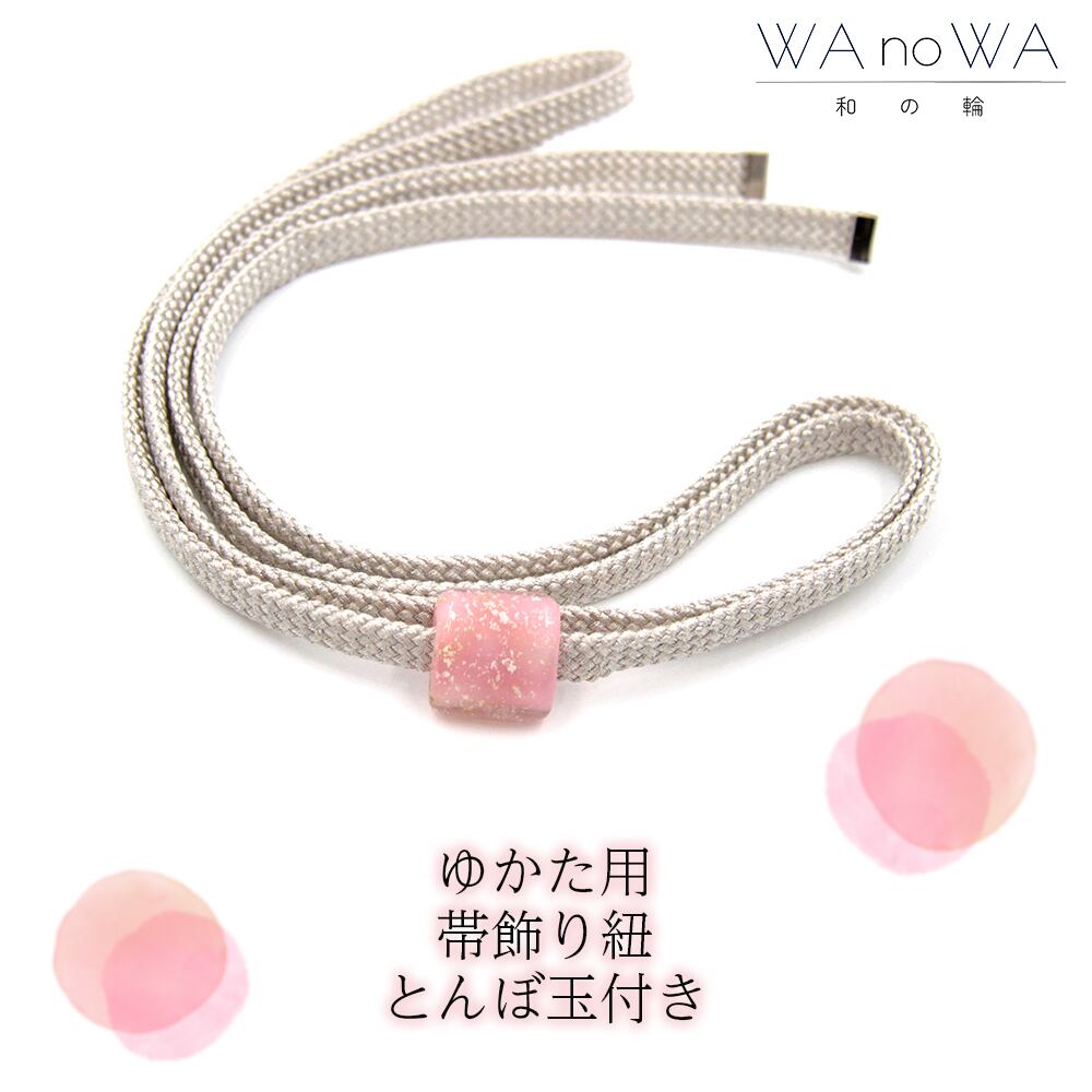 飾り紐 トンボ玉 日本製 飾りひも 帯飾り 帯締め 帯留め 浴衣用 着物 シンプル シルバー×桃箔 WA-W-30