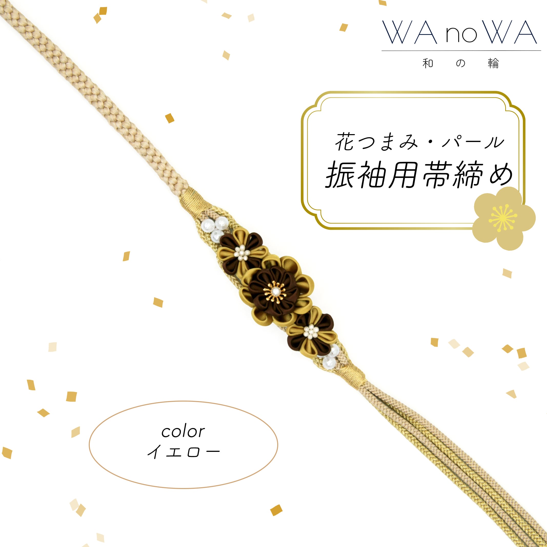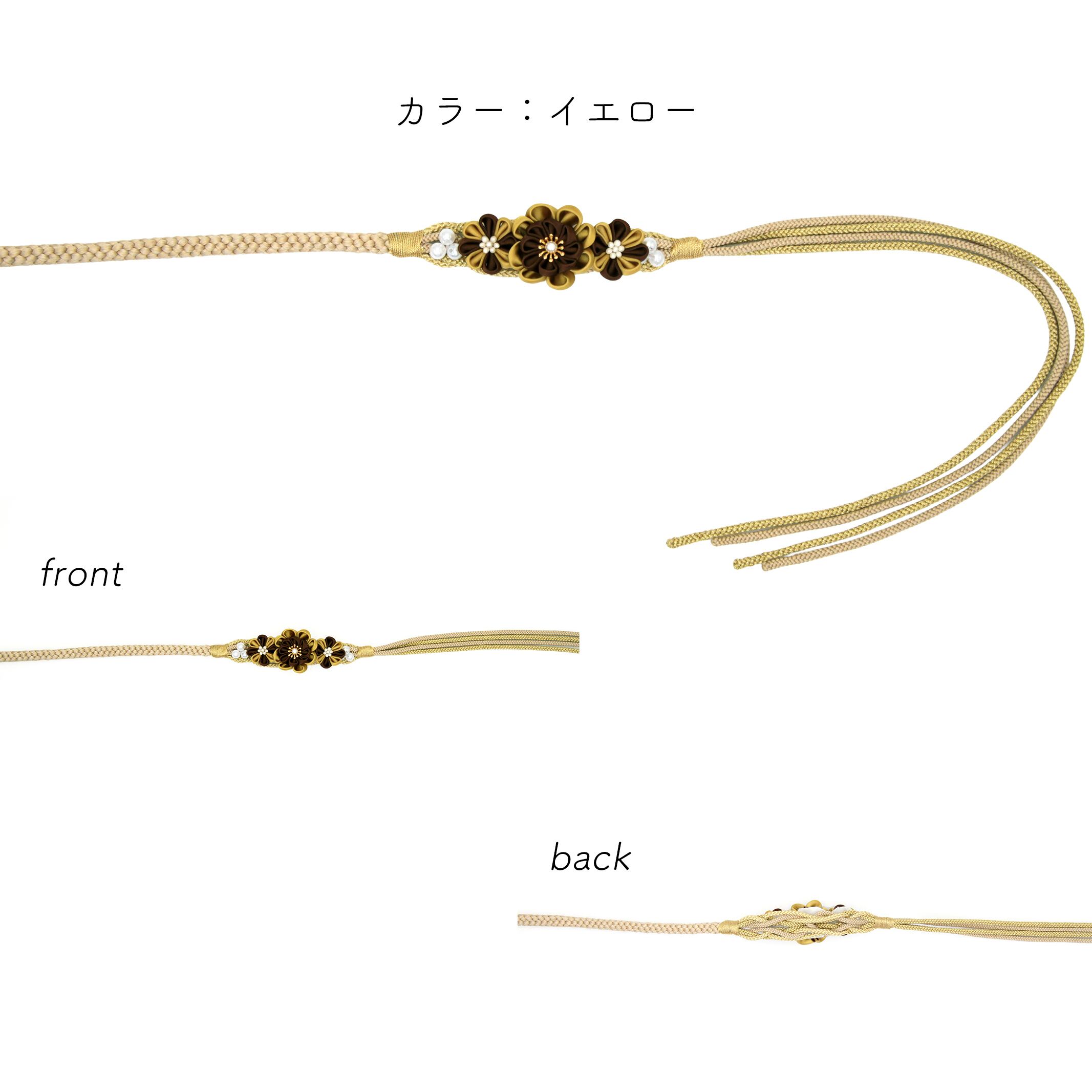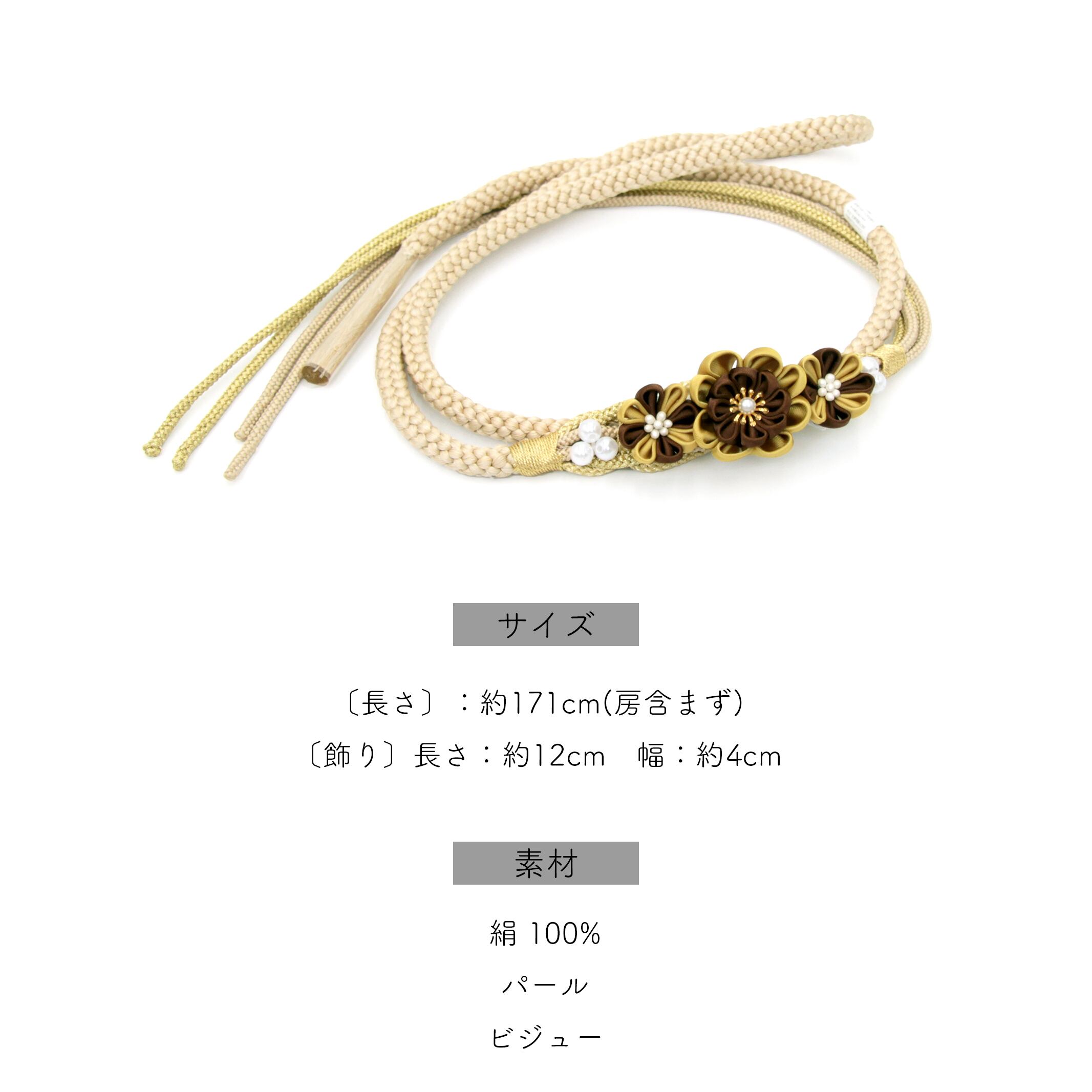 丸みあるつまみ細工とパールが可愛らしい帯締めです。