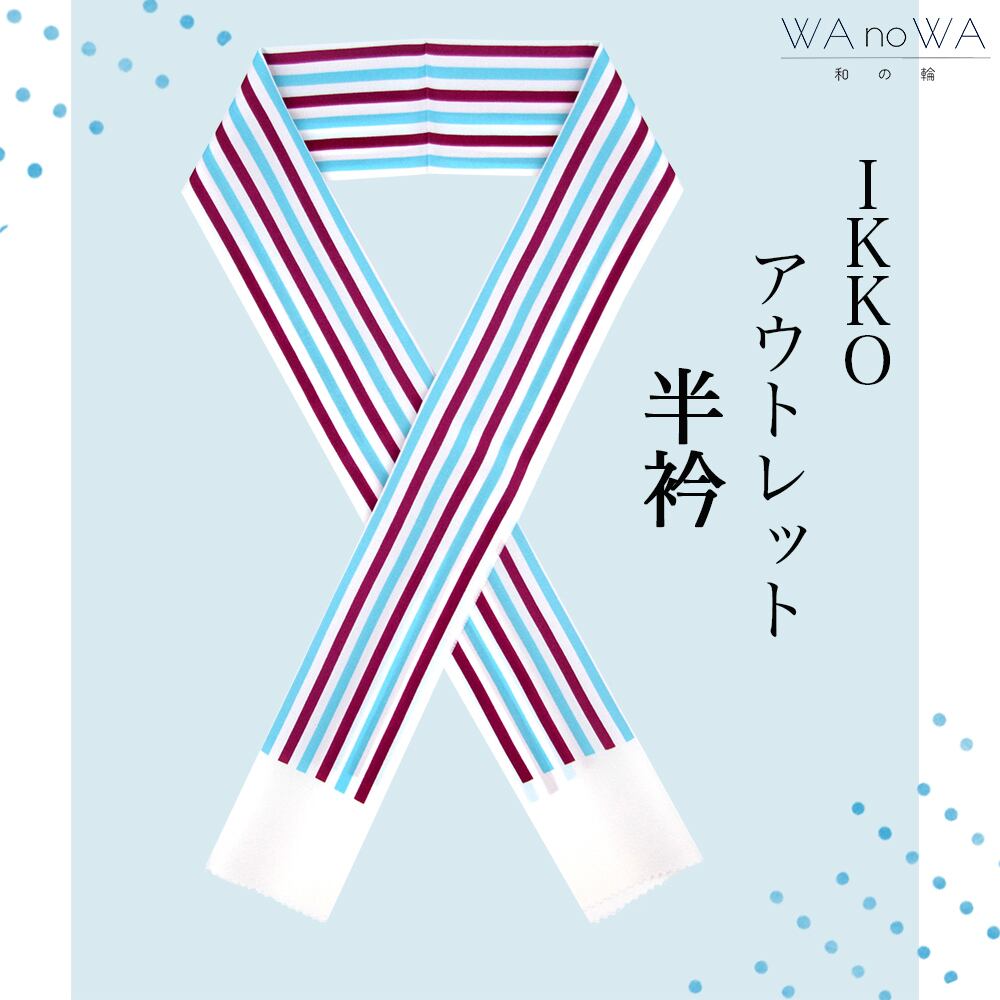 半衿 アウトレット半衿 IKKO IKKOプロデュース ストライプ 水色 エンジ 着物 振袖 小紋 レトロ ポップ 日本製 WA-WO-3