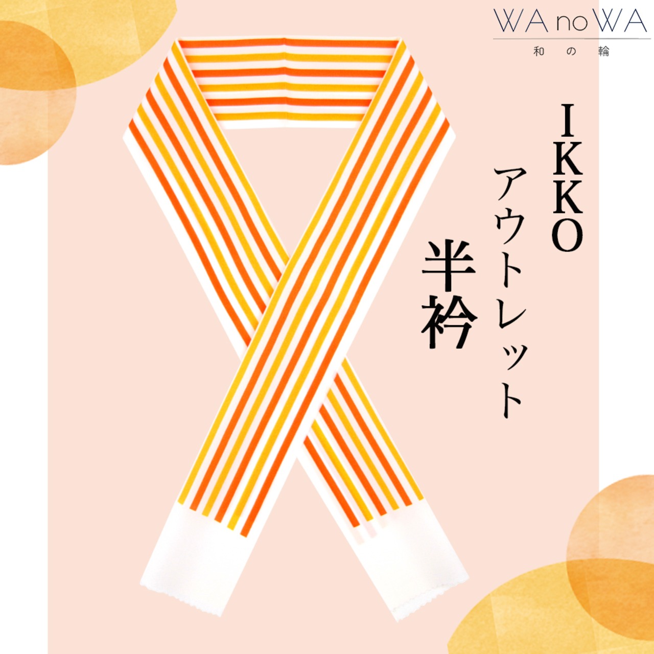 半衿 アウトレット半衿 IKKO IKKOプロデュース ストライプ オレンジ 黄 着物 振袖 小紋 レトロ ポップ 日本製 WA-WO4