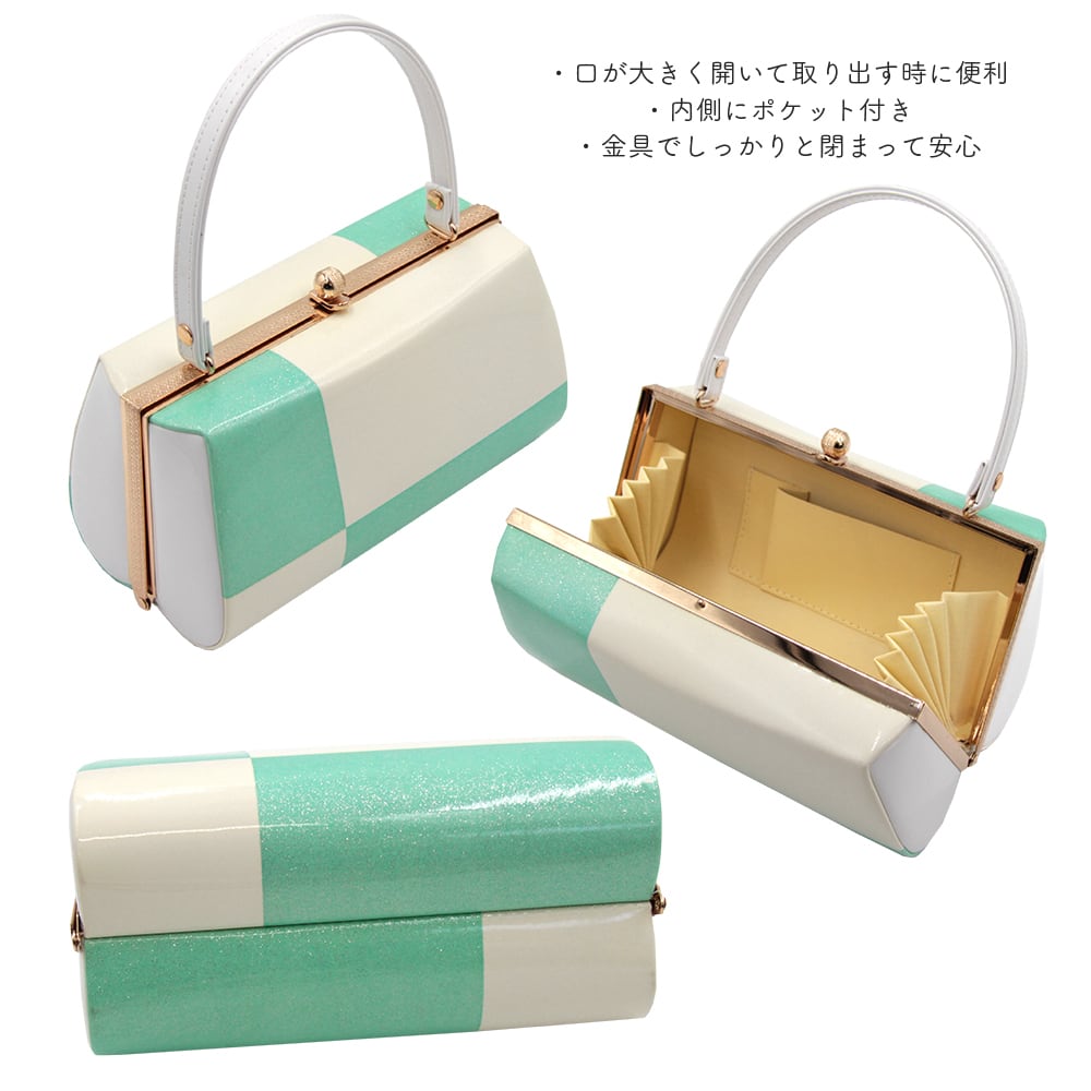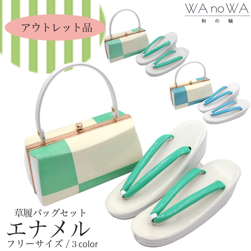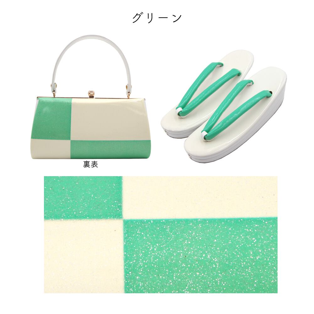 草履バッグ 草履バック 草履バッグセット アウトレット 訳あり グリーン ライトグリーン 水色 エナメル ポップ レトロ ツートン スクエア 振袖 成人式 フリーサイズ WA-ZO-1/12 | WA by Petal Prier