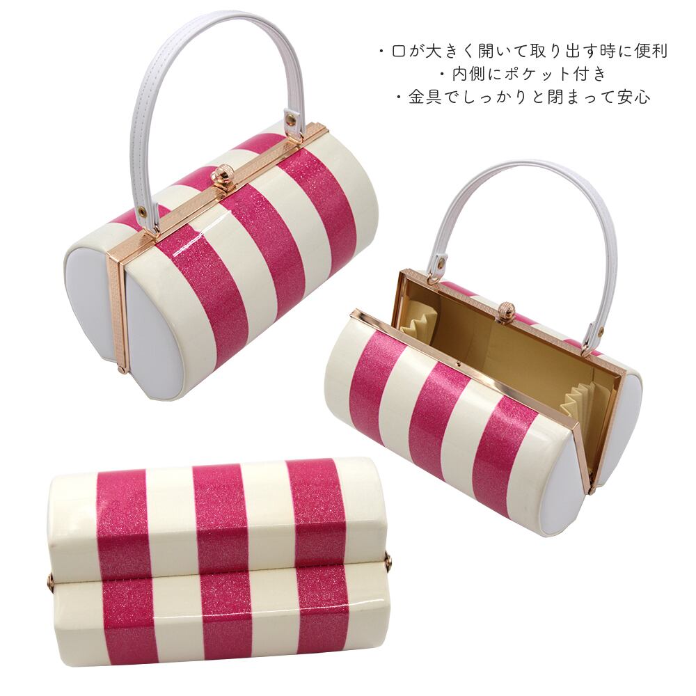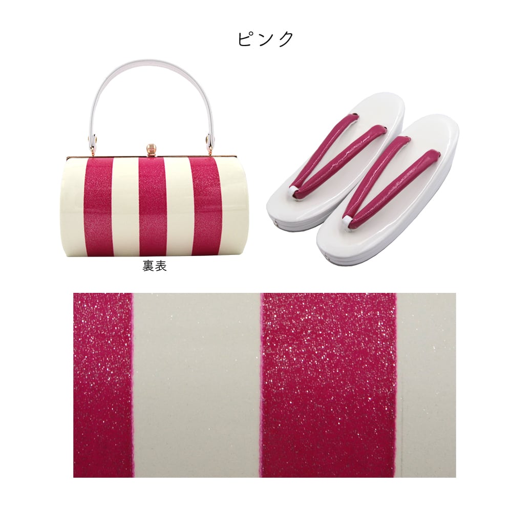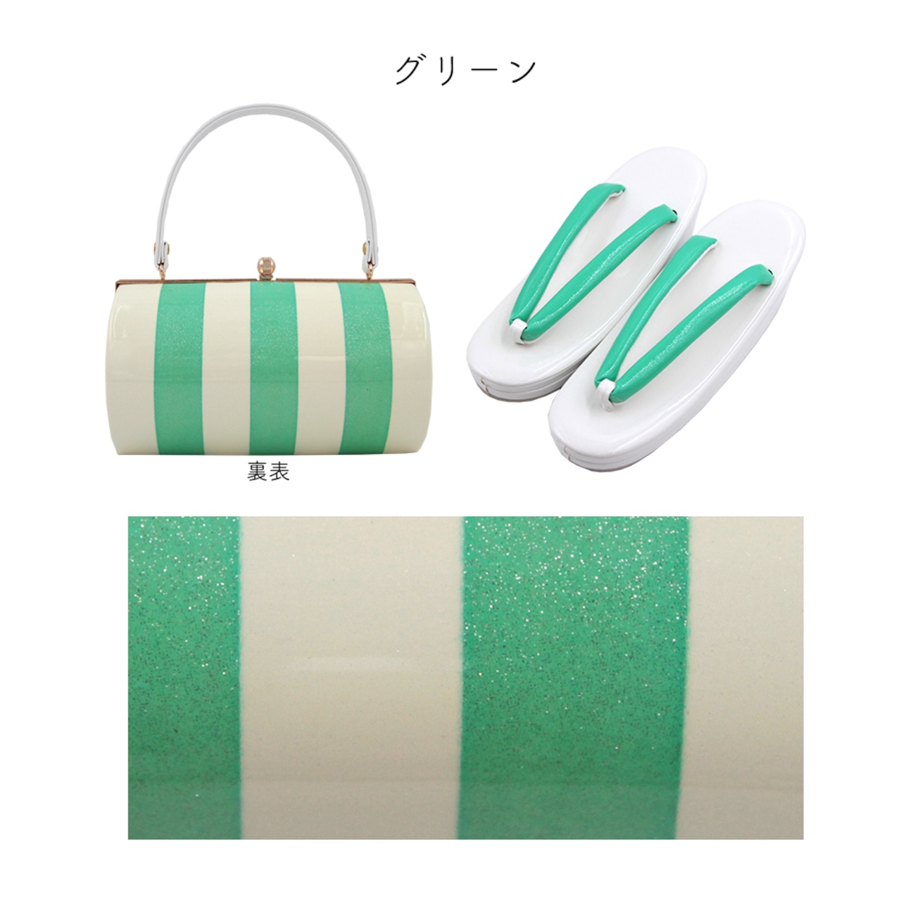 草履バッグ 草履バック 草履バッグセット アウトレット 訳あり ピンク 緑 エナメル ポップ レトロ ツートン ストライプ 振袖 成人式 フリーサイズ WA-ZO-10/11 | WA by Petal Prier
