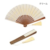 扇子袋付きで、小型で軽量なので持ち運びに便利です。扇面にUV加工が施されているため、室内では白色で野外で日光に浴びると色が変化します。