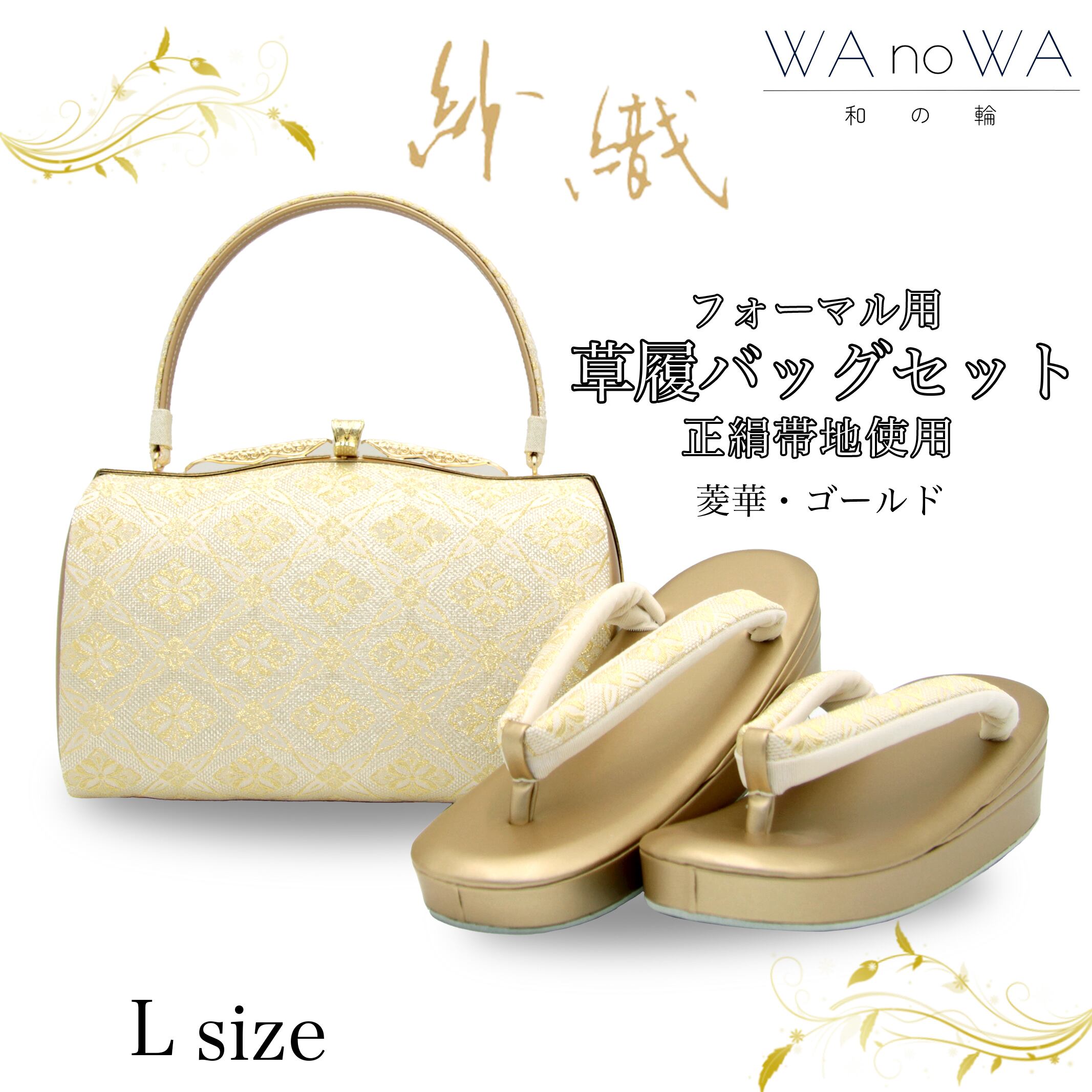 草履バッグ 草履バック 草履バッグセット 紗織 沙織 華紋 ゴールド 正絹帯地 フォーマル用 黒留袖 色留袖 七五三 訪問着 結婚式 フリー Fサイズ WA-Z-248-L | WA by Petal Prier