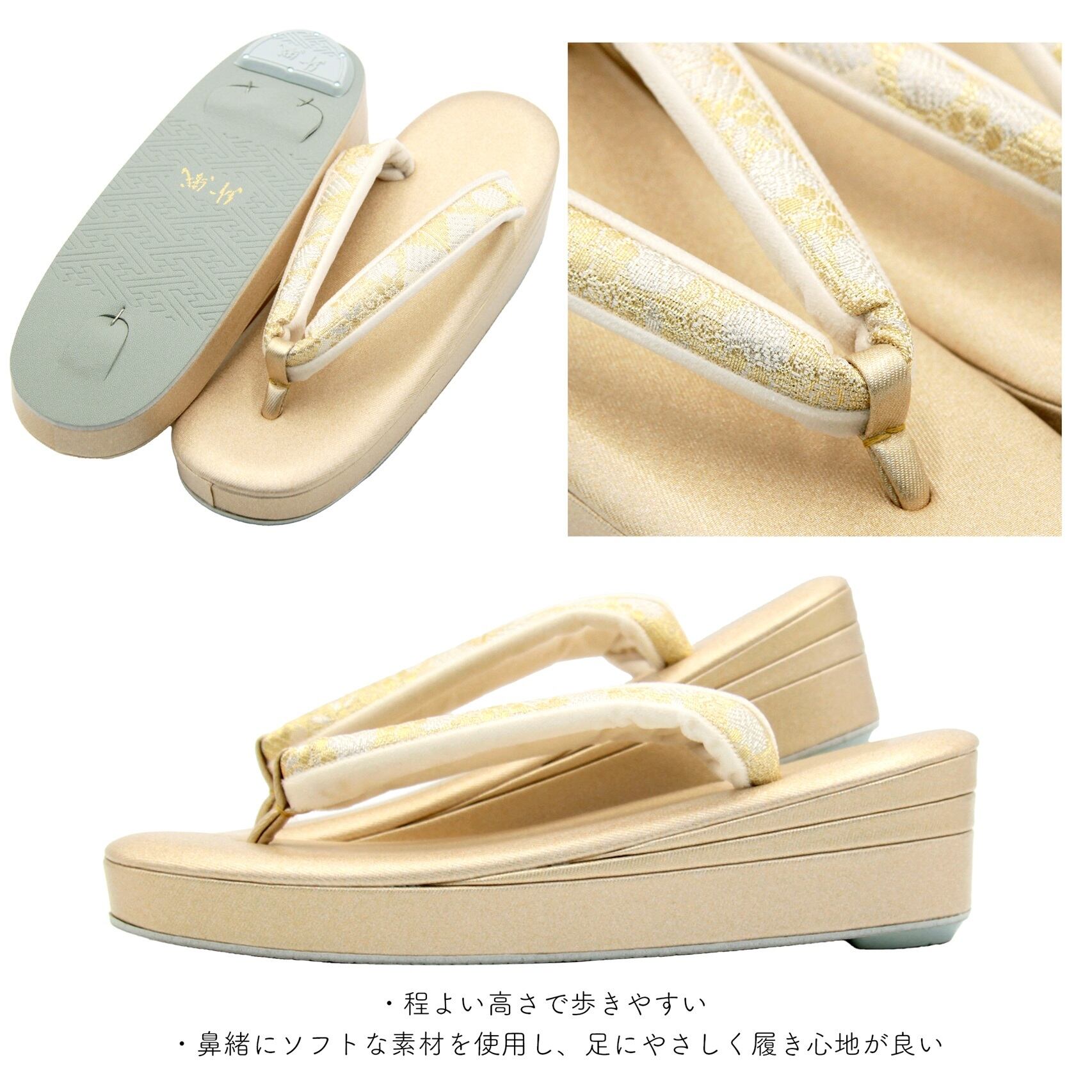 草履は鼻緒部分に柔らかな素材を採用しているため、足に優しく、長時間履いても疲れにくい快適な履き心地を実現しています。