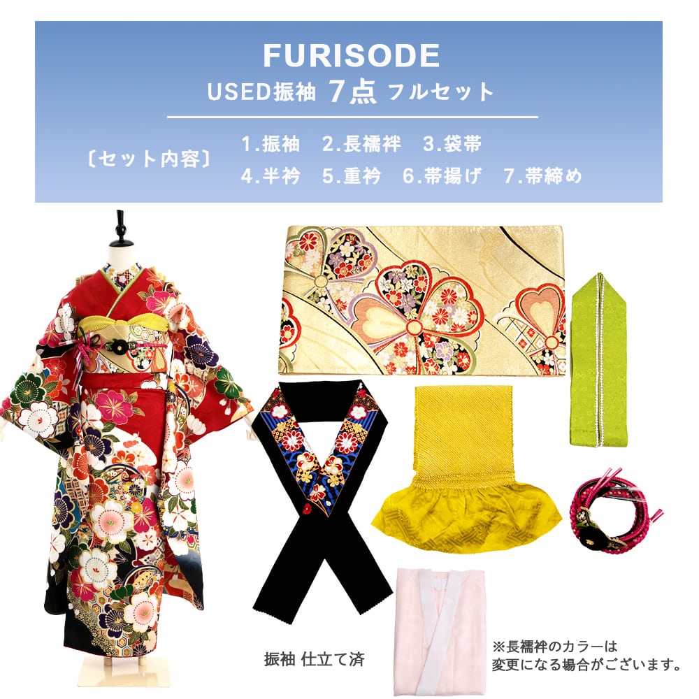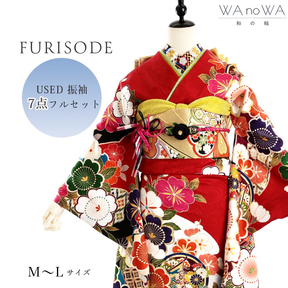 振袖 振袖セット USED振袖 赤 古典柄 桜 7点フルセット レディース M〜Lサイズ WA-F-75