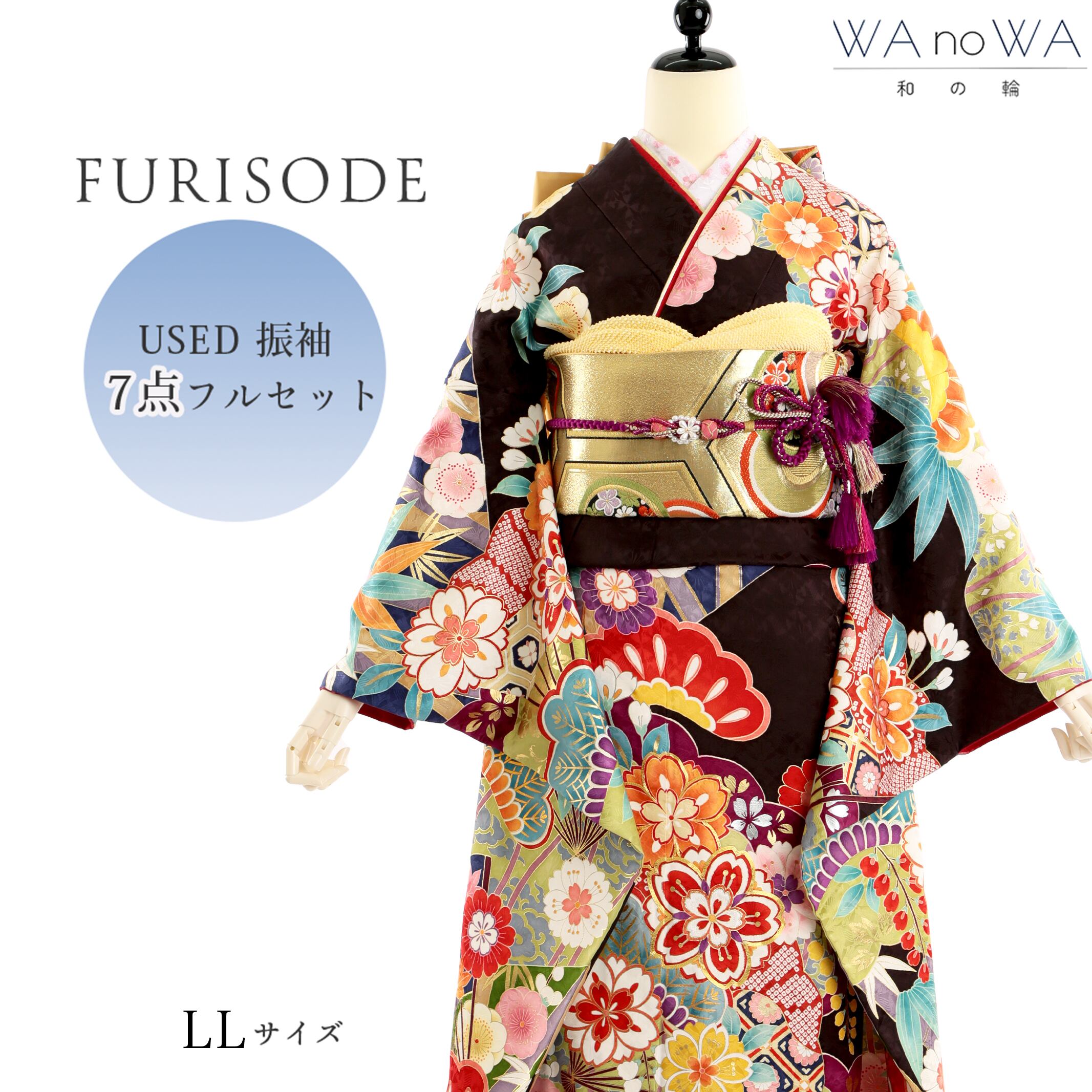 振袖 振袖セット USED振袖 茶 古典柄 松竹梅 7点フルセット レディース LLサイズ WA-F-111
