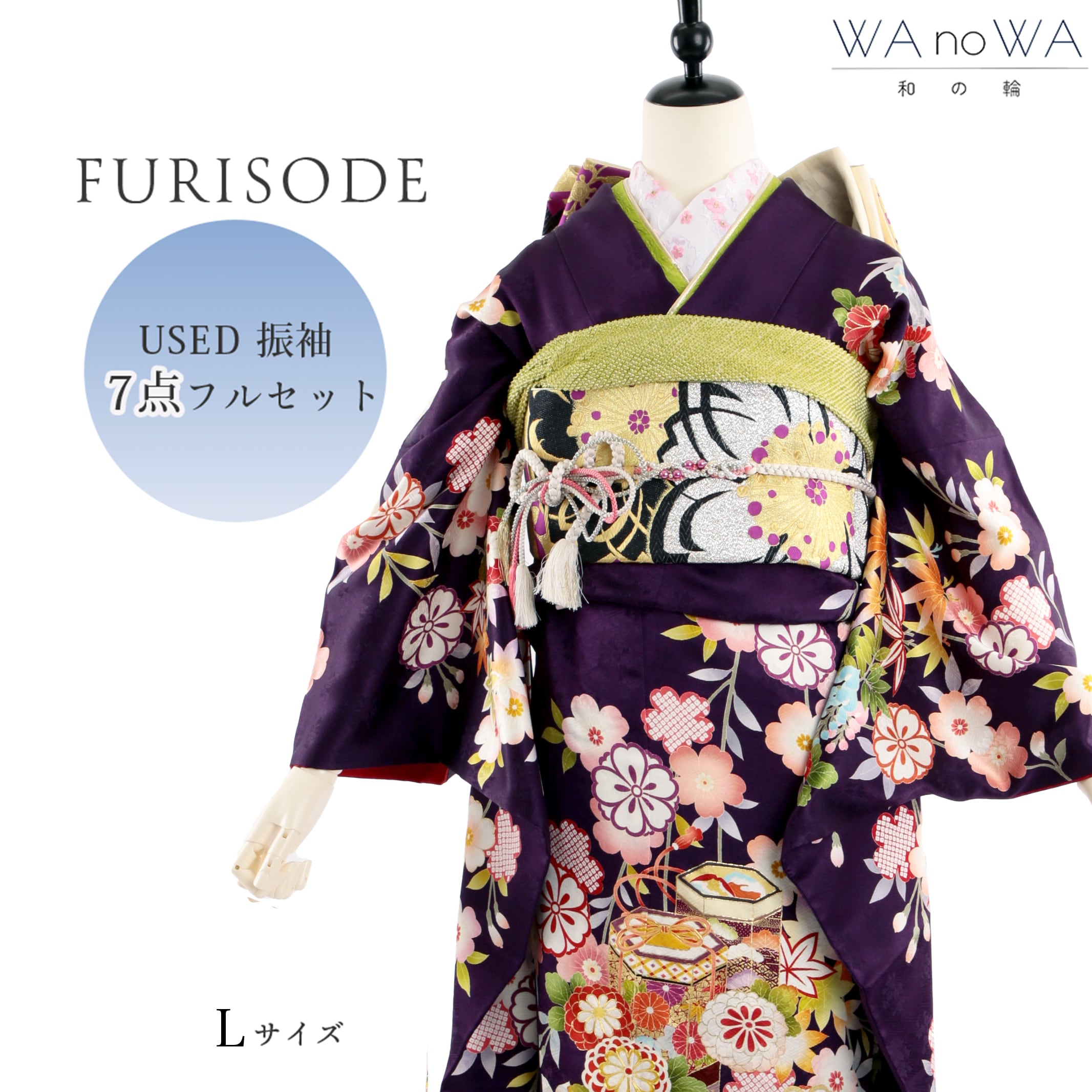 振袖 振袖セット USED振袖 紫 古典柄 貝桶 菊 7点フルセット レディース Lサイズ WA-F-126
