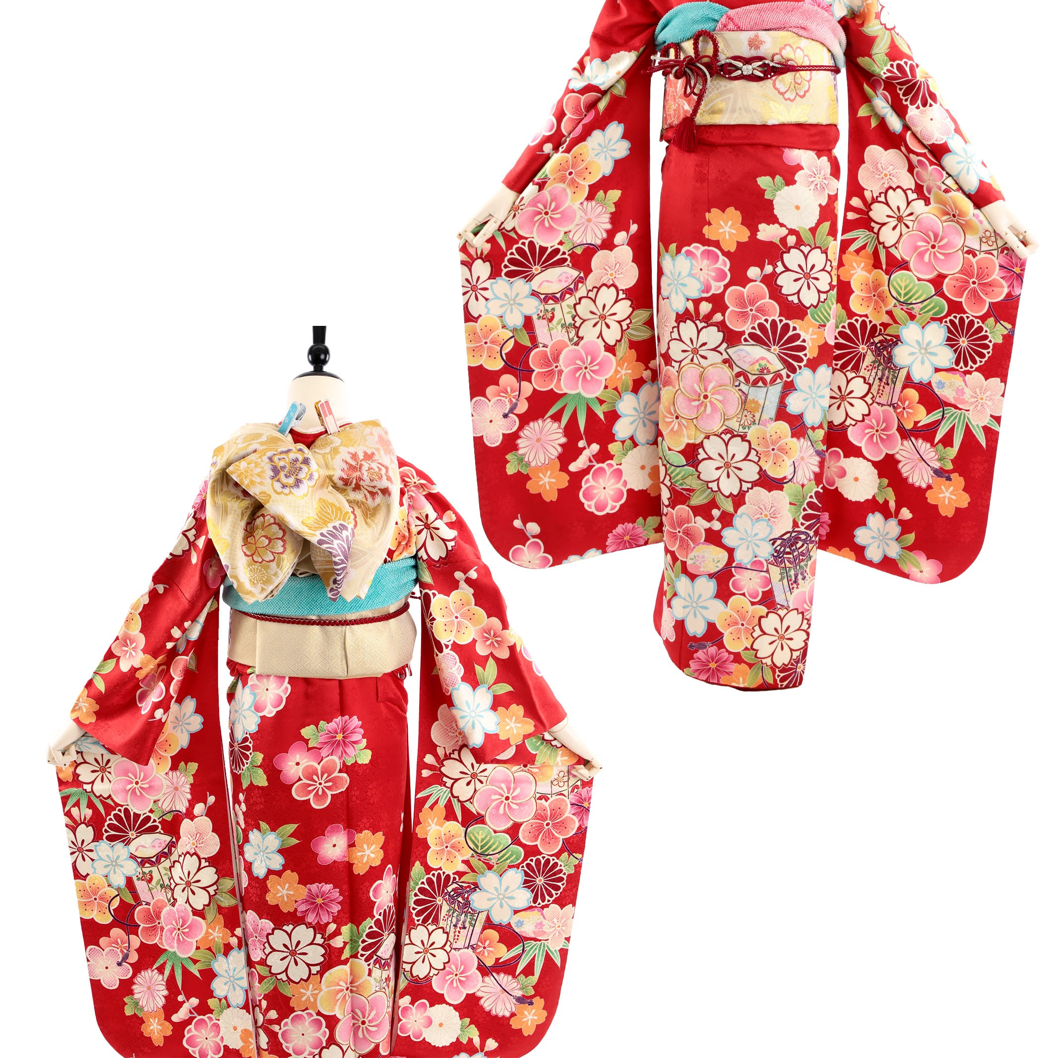 鮮やかな赤地に華やかな花柄が印象的な古典振袖です。