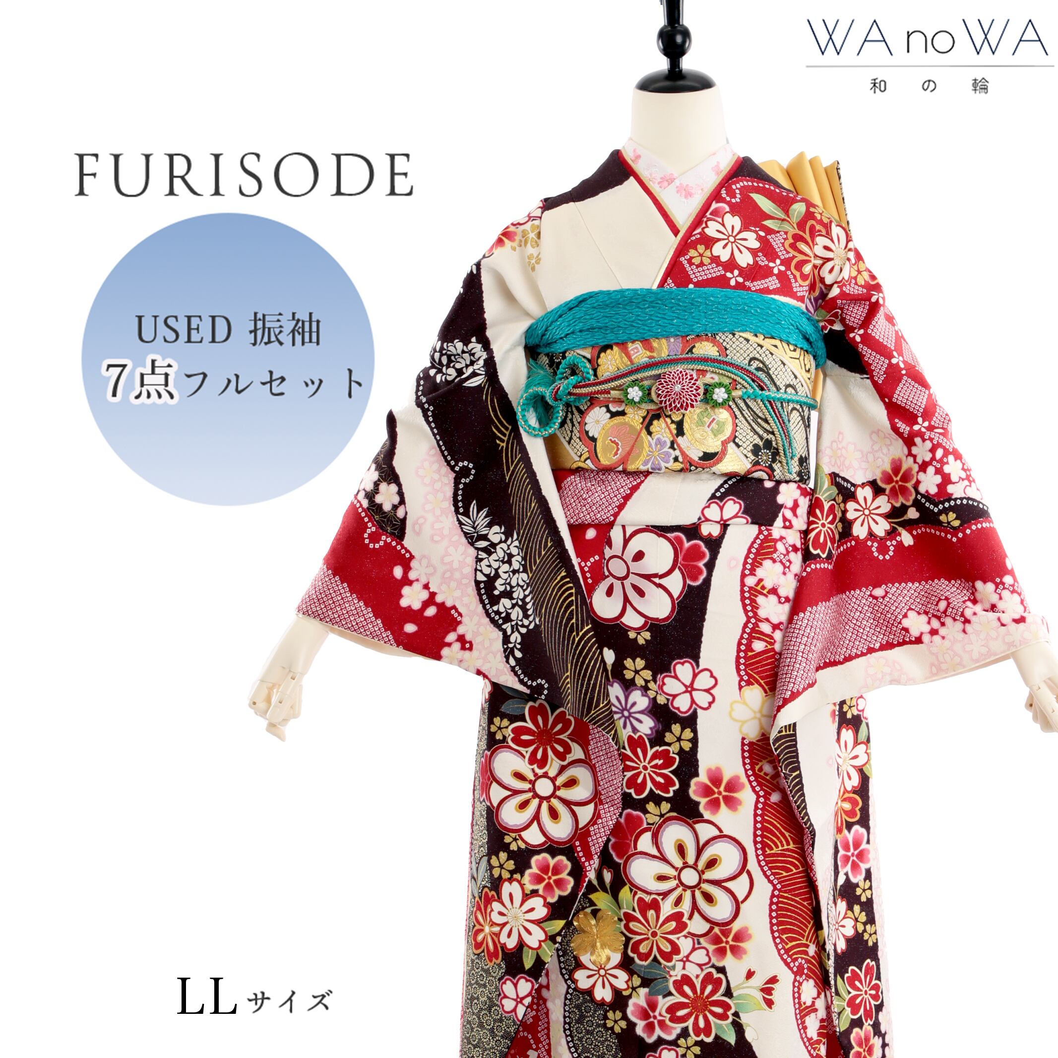 振袖 振袖セット USED振袖 白 古典柄 モダン 金駒刺繍 7点フルセット レディース LLサイズ WA-F-142