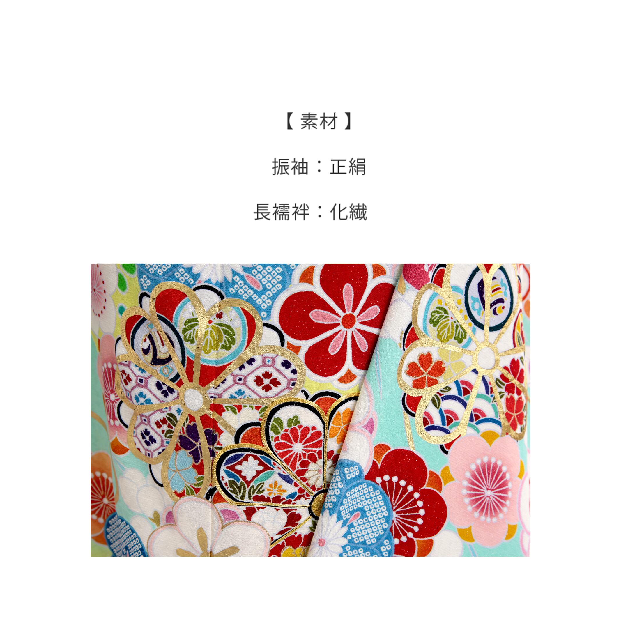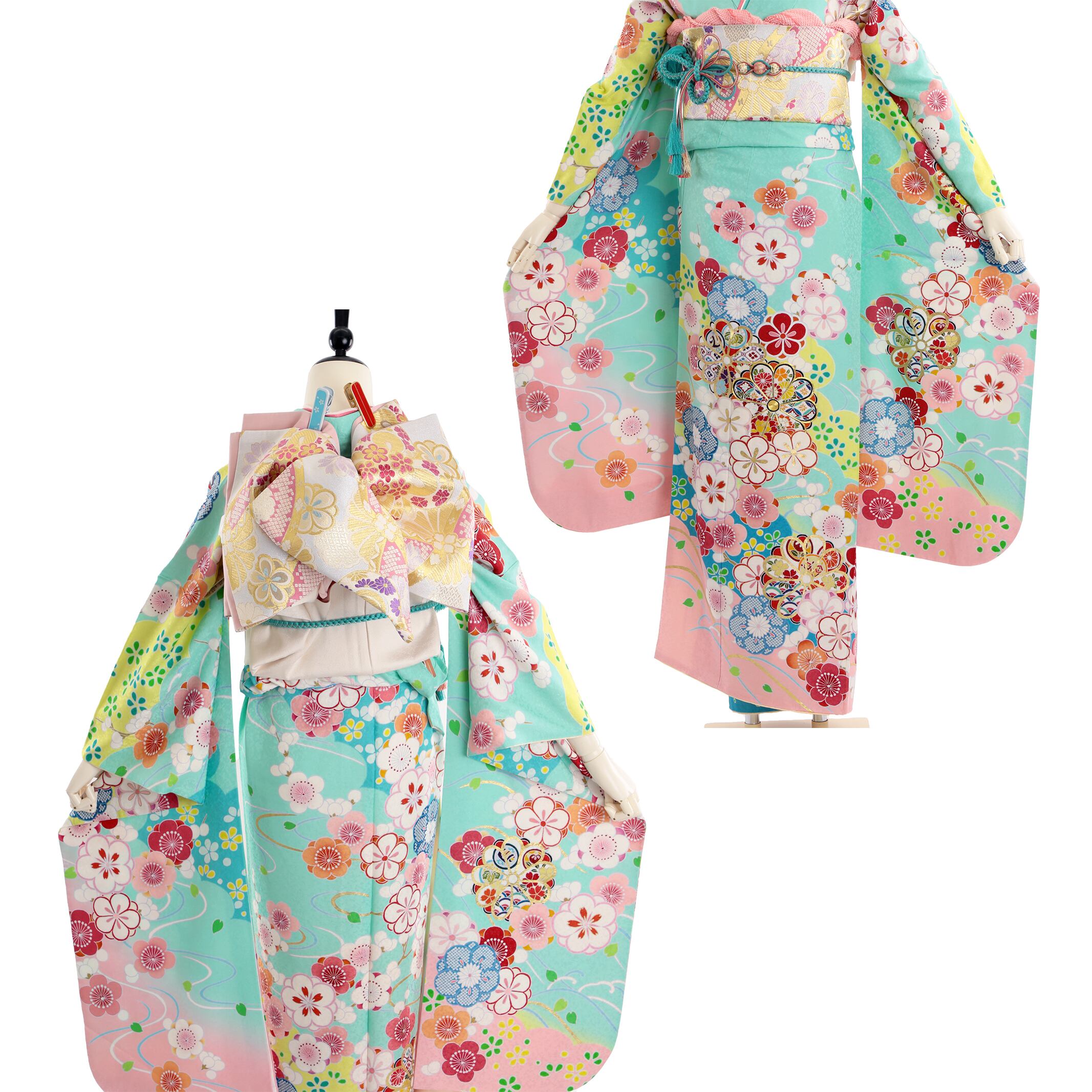 爽やかな水色地に可愛らしい梅柄が印象的な古典振袖です。
