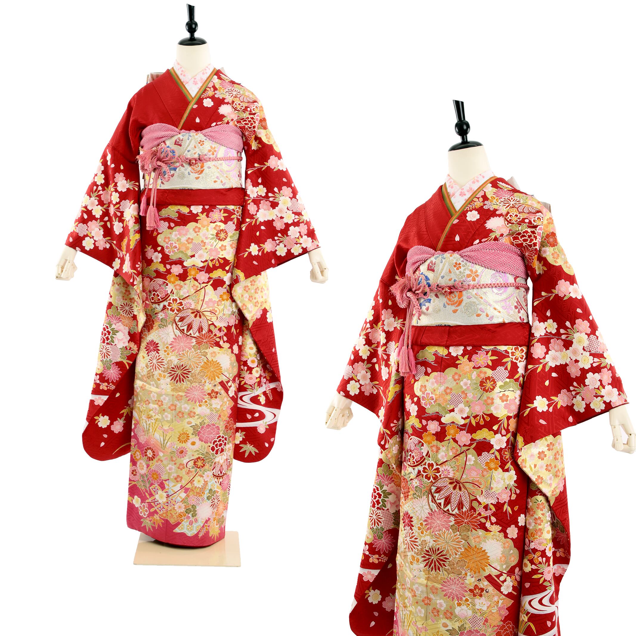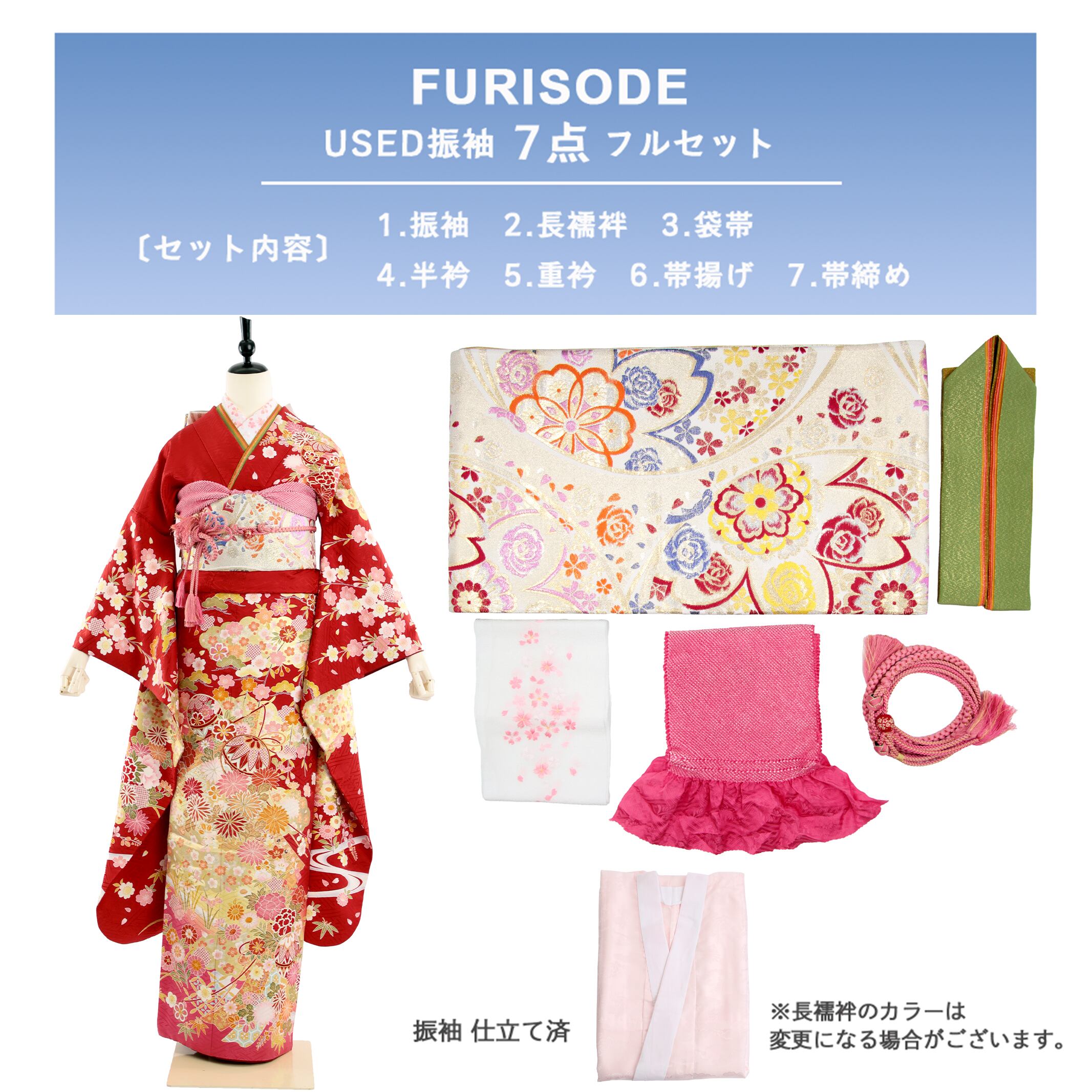 振袖 振袖セット USED振袖 赤 新古典柄 鞠 菊 7点フルセット レディース Mサイズ WA-F-204