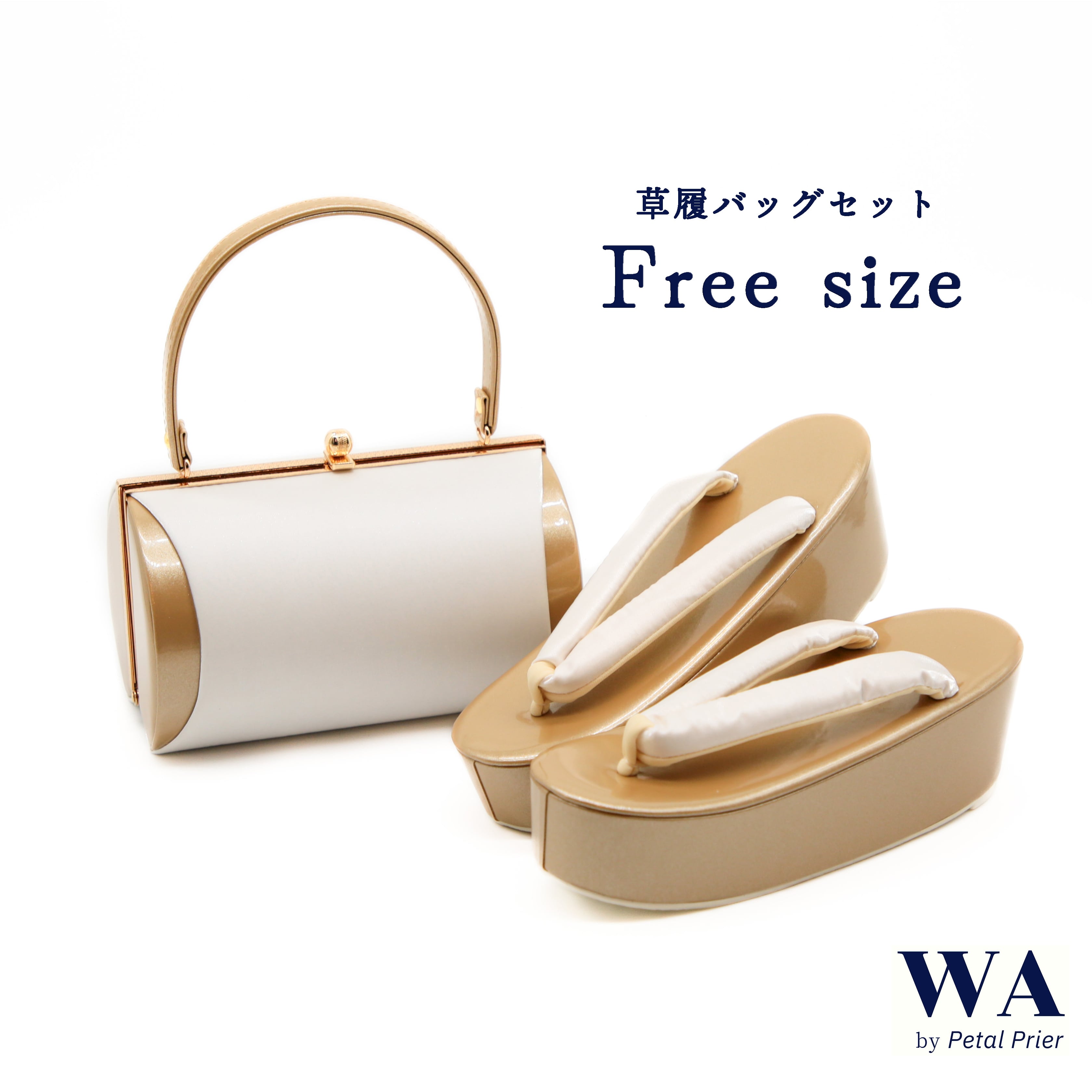 草履バッグ 草履バック 草履バッグセット 新品 成人式 振袖用 振袖 結婚式 礼装用 サテン ホワイト ゴールド 白 金 エナメル 厚底 Fサイズ フリーサイズ Z-191