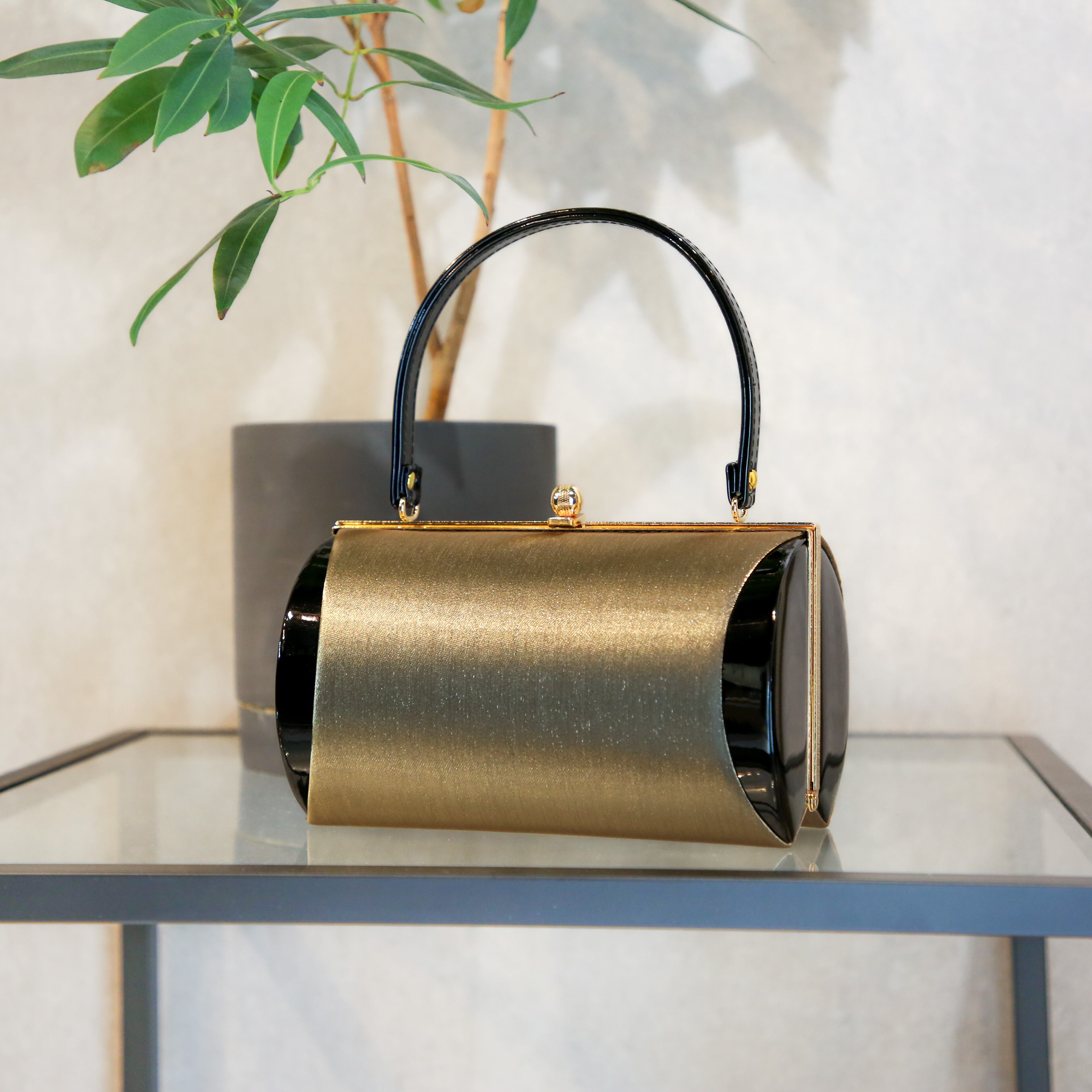 上品な輝きを放つサテン生地とツヤのあるエナメル素材を組み合わせた草履バッグセットです。