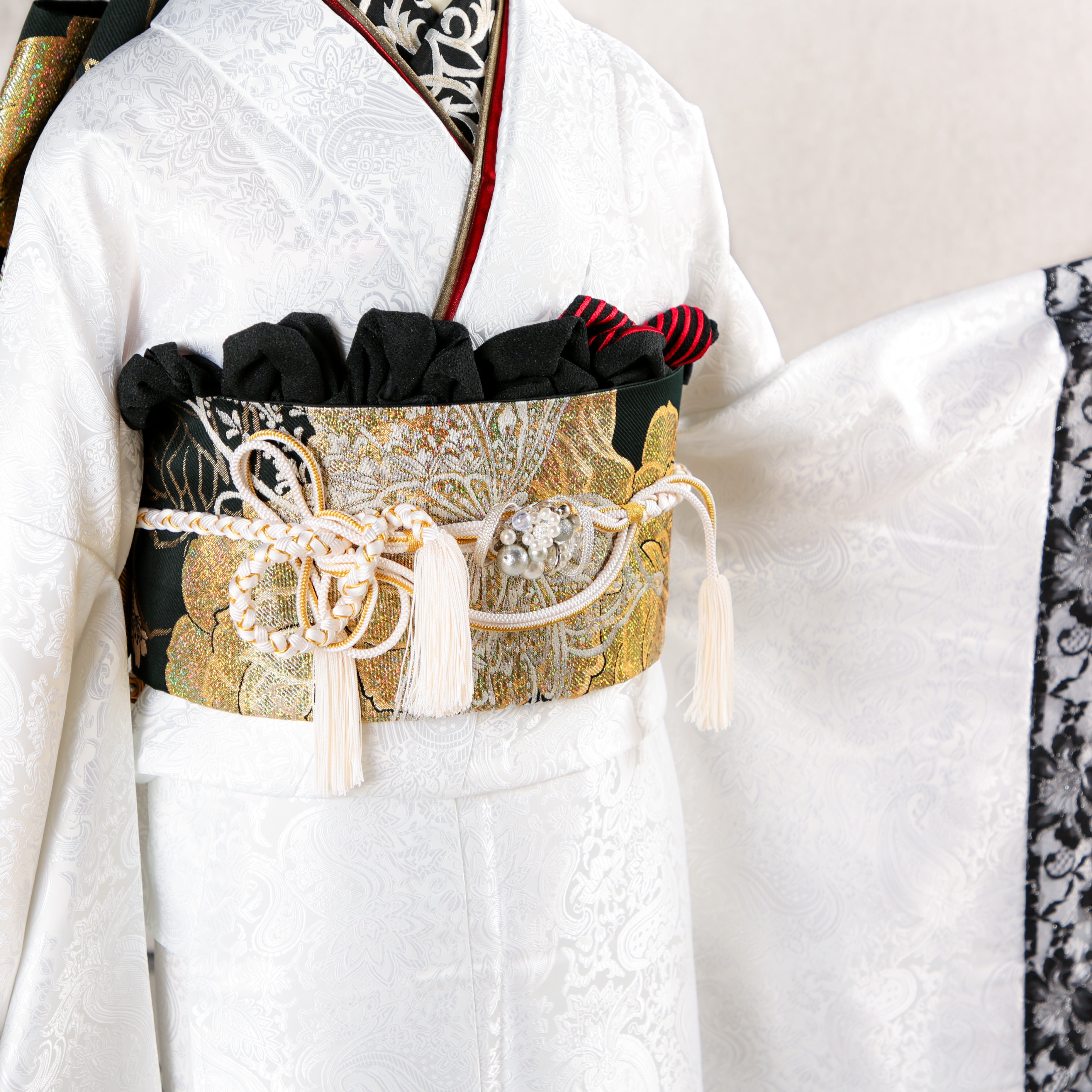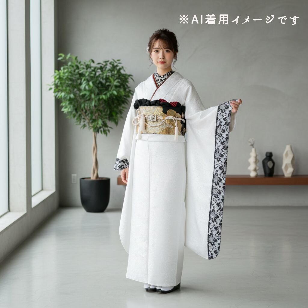 潔いホワイトをベースに、計算されたモノトーン使いが、成人式や式典で凛とした存在感を放ちます。