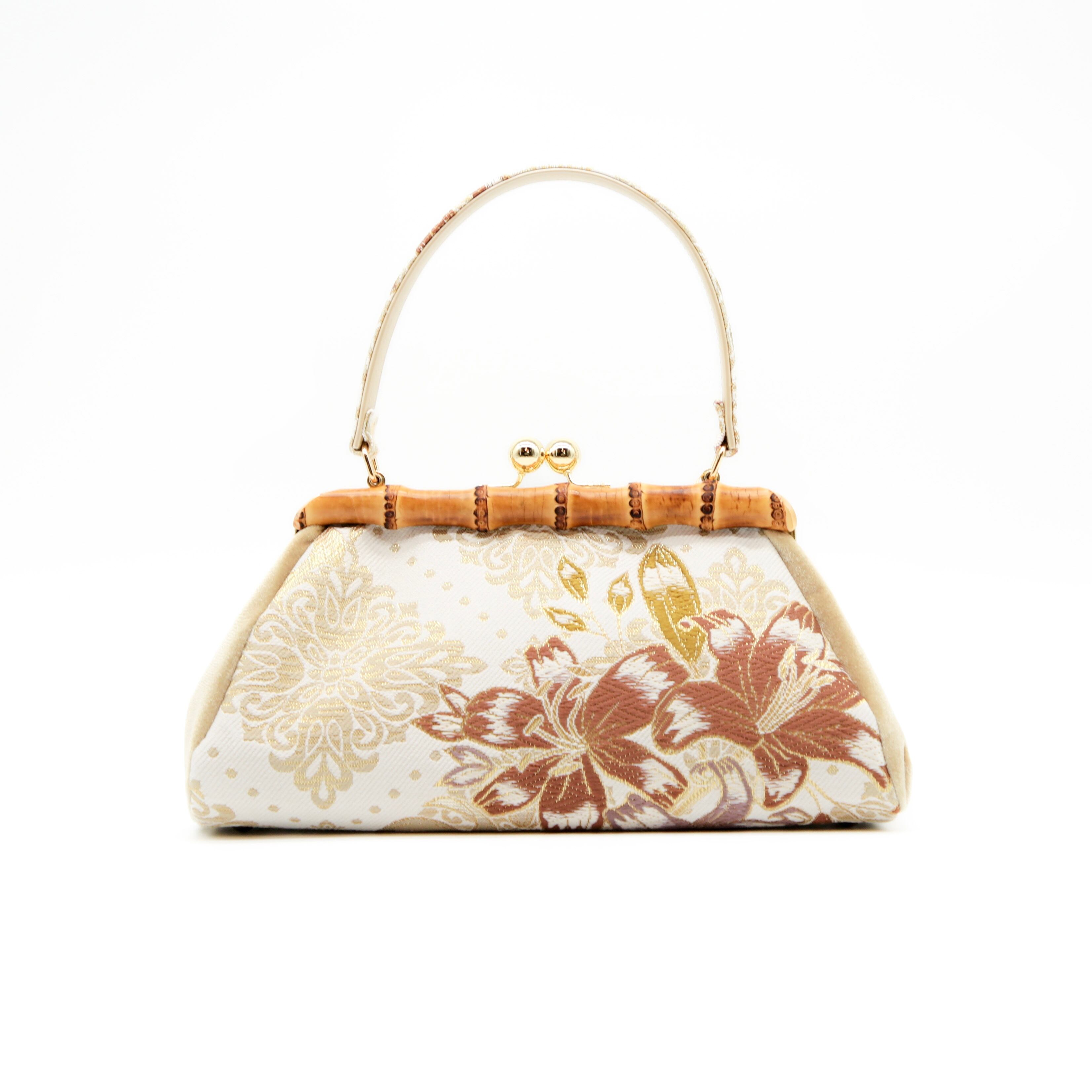 伝統的な帯地に、バンブーフレームをミックスしたこなれ感抜群の草履バッグセットです。