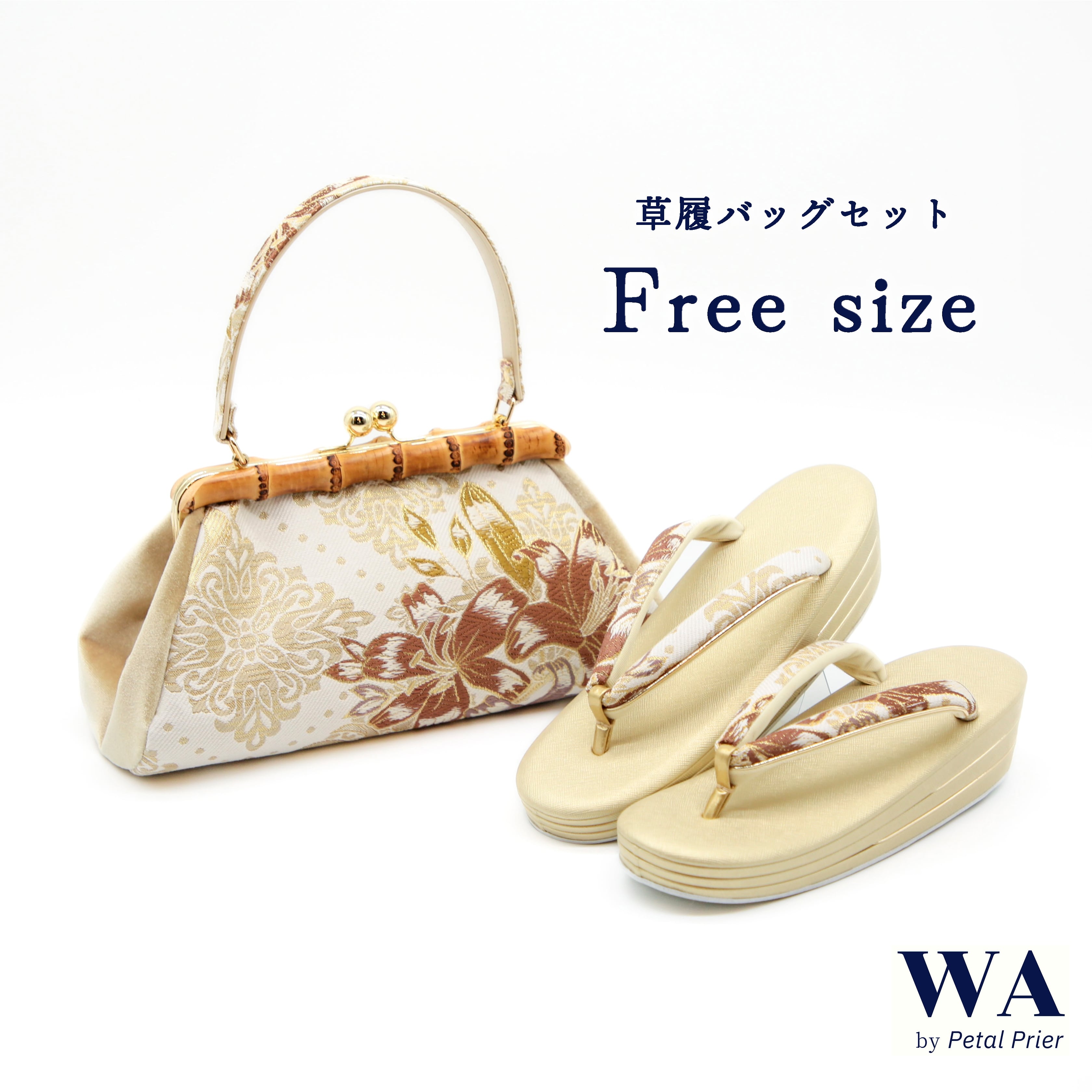【草履・バッグセット】バンブー×ホワイトゴールド