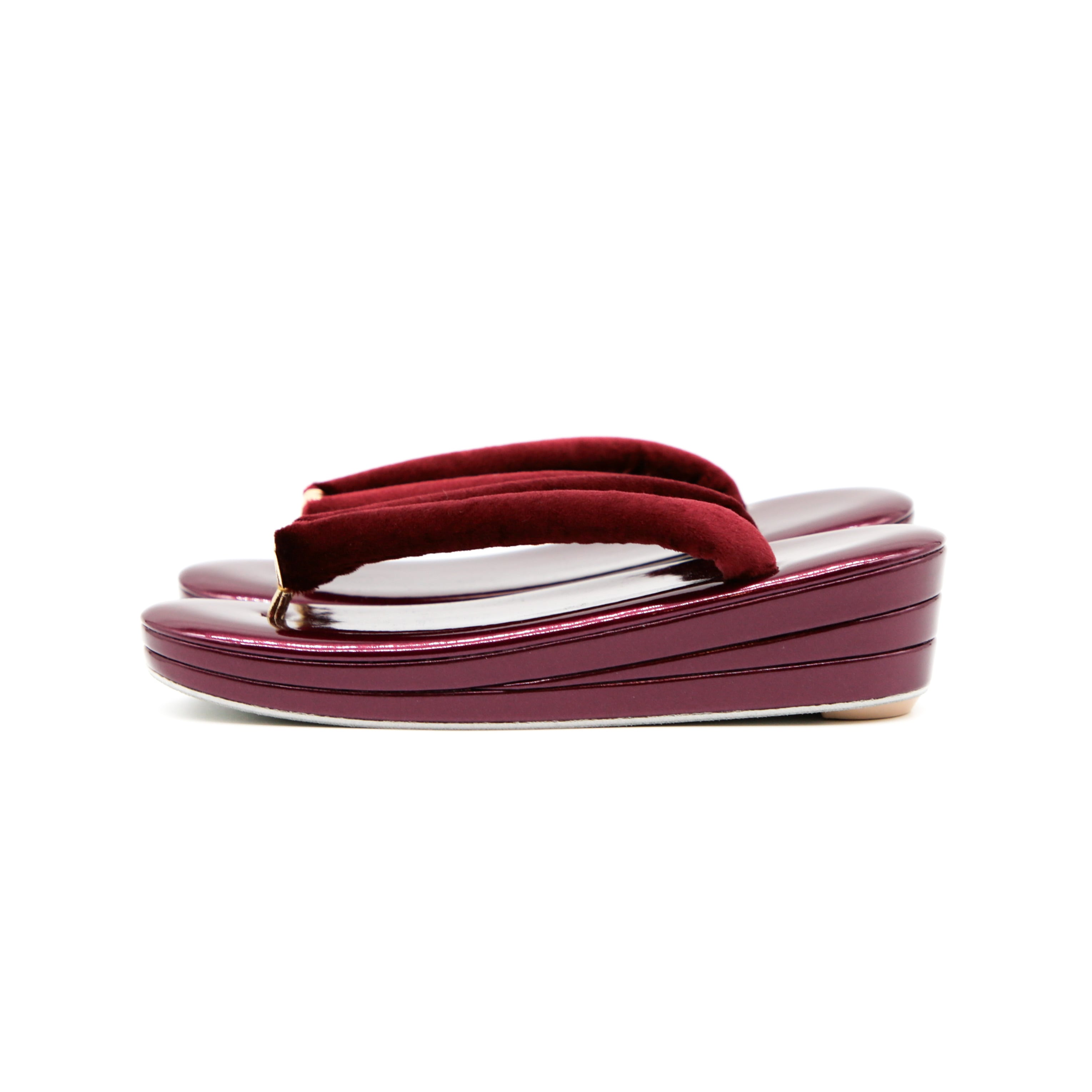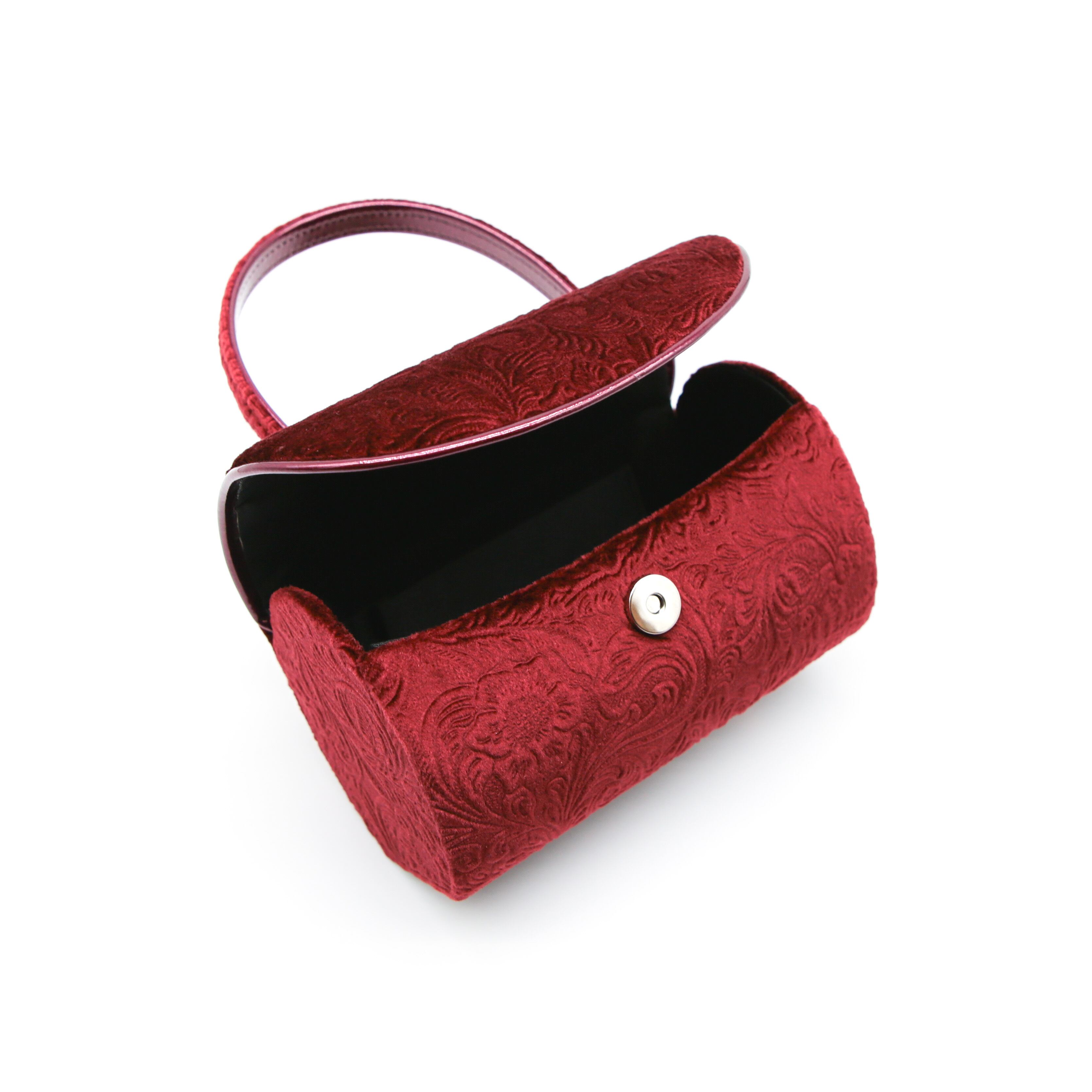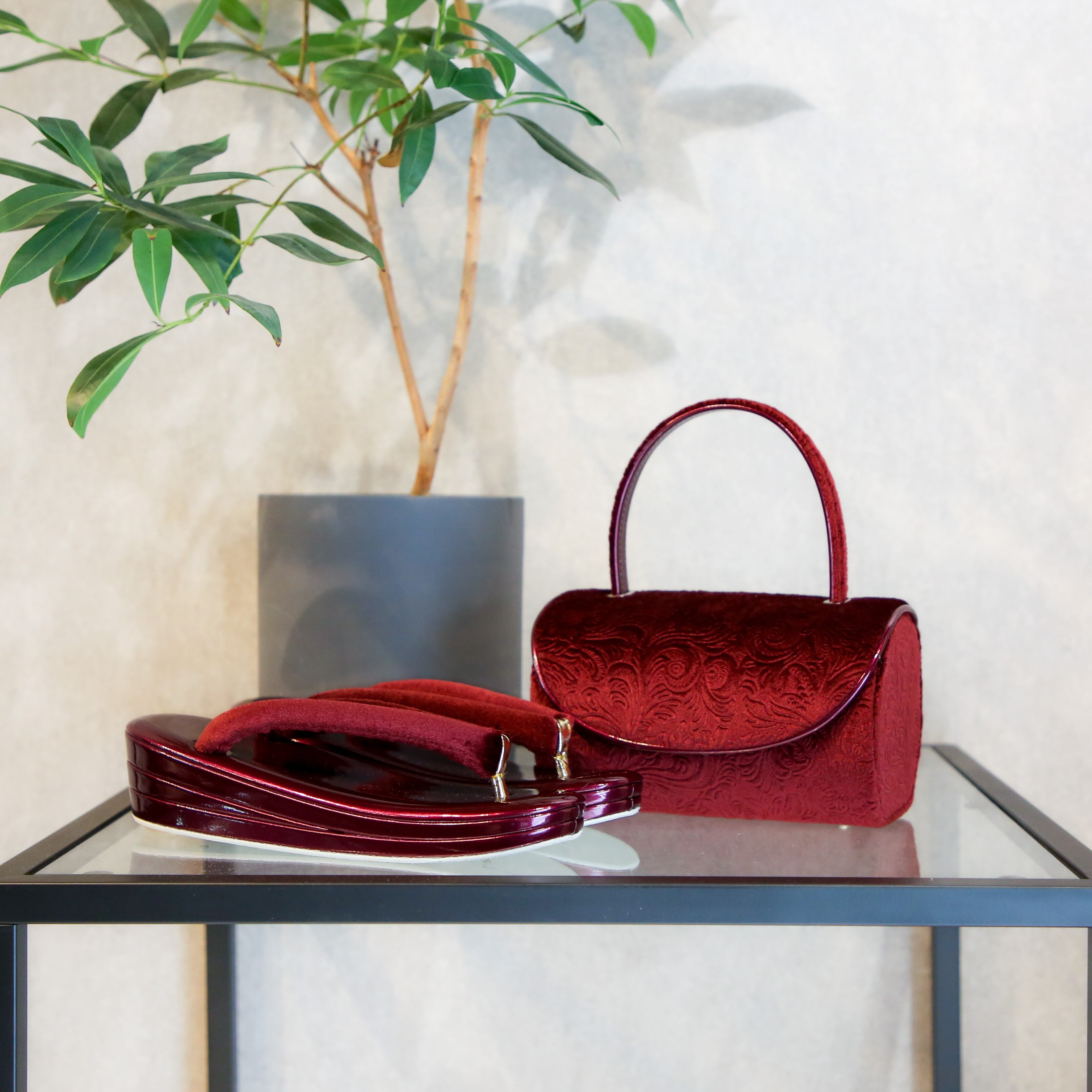 しっとり柔らかいボルドーのベルベット生地に、繊細な型押しを施した草履バッグセットです。
