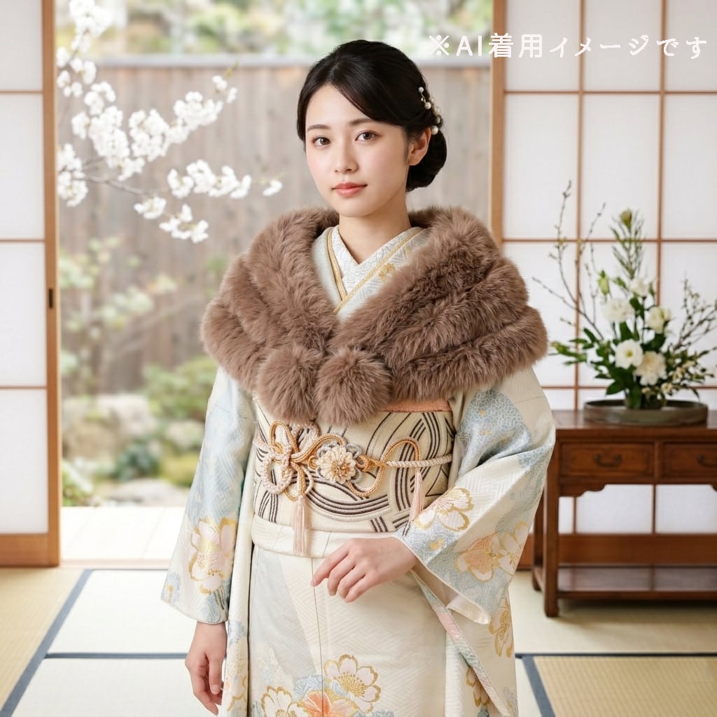 ショール 新品・未使用品【モカ】成人式 振袖 着物 結婚式 フェイク ファー 4連 ストール マラボー W-107