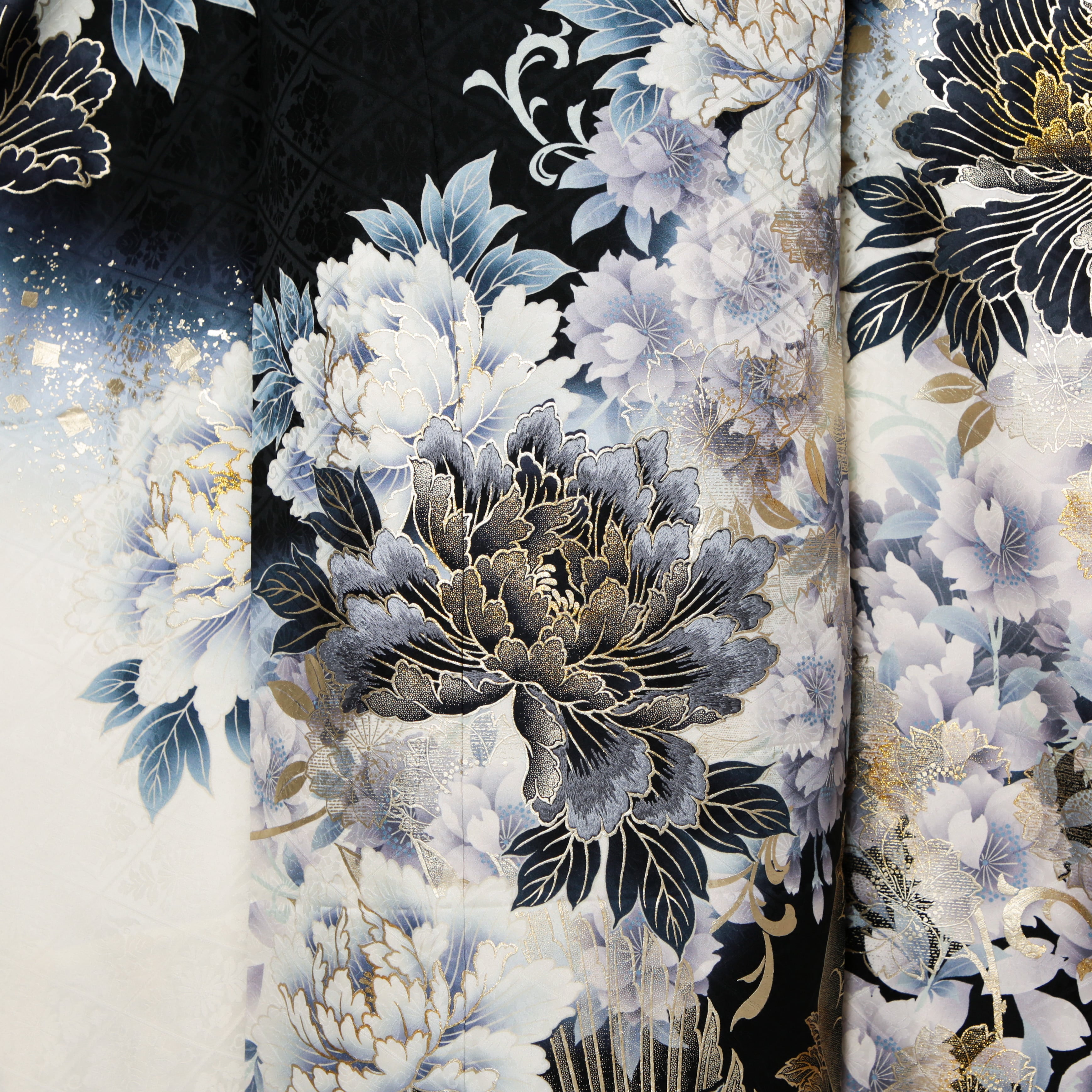 大胆に配置された牡丹が、動くたびに華やかに表情を変え、立ち姿をより美しく、凛と演出します。