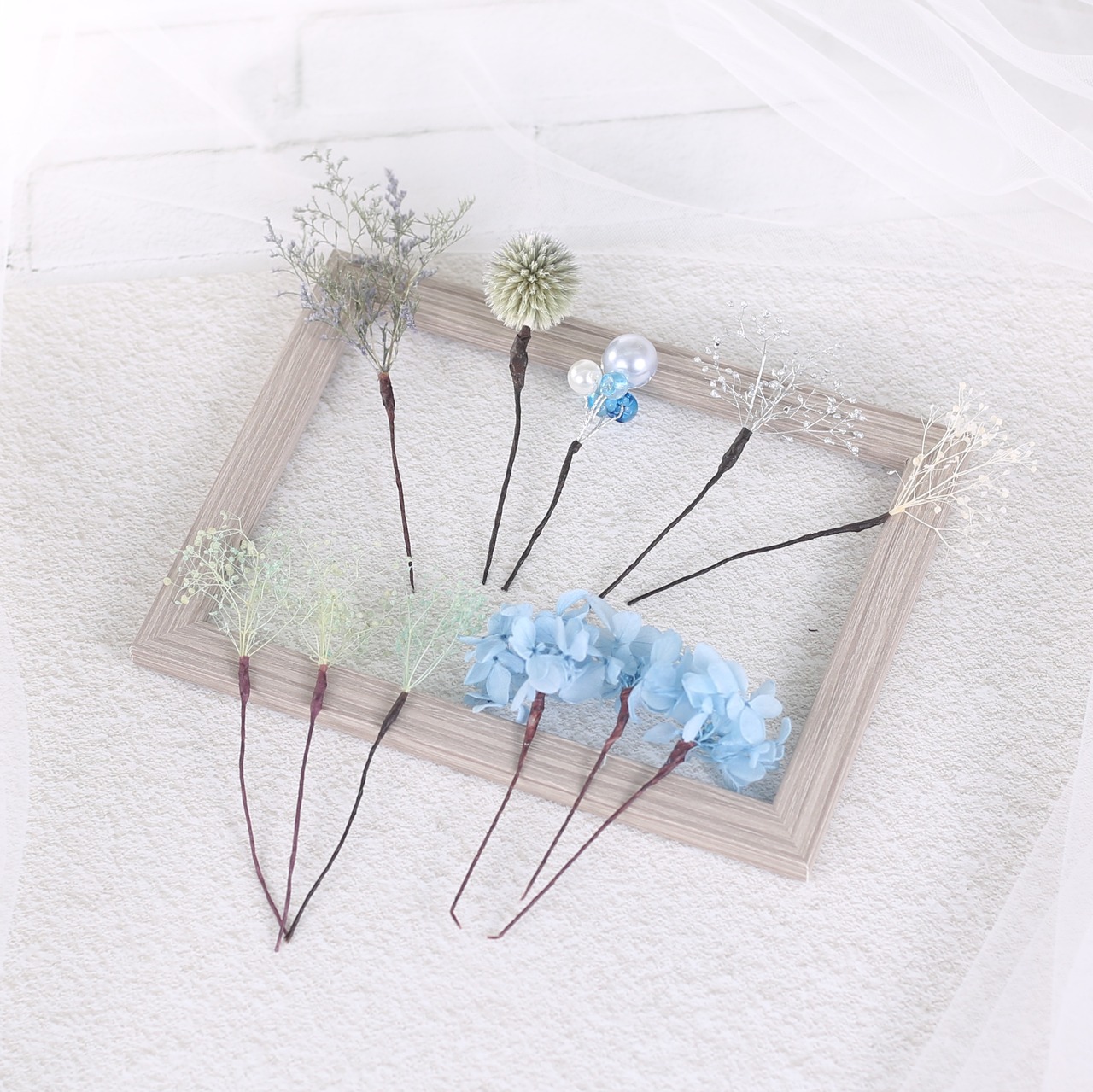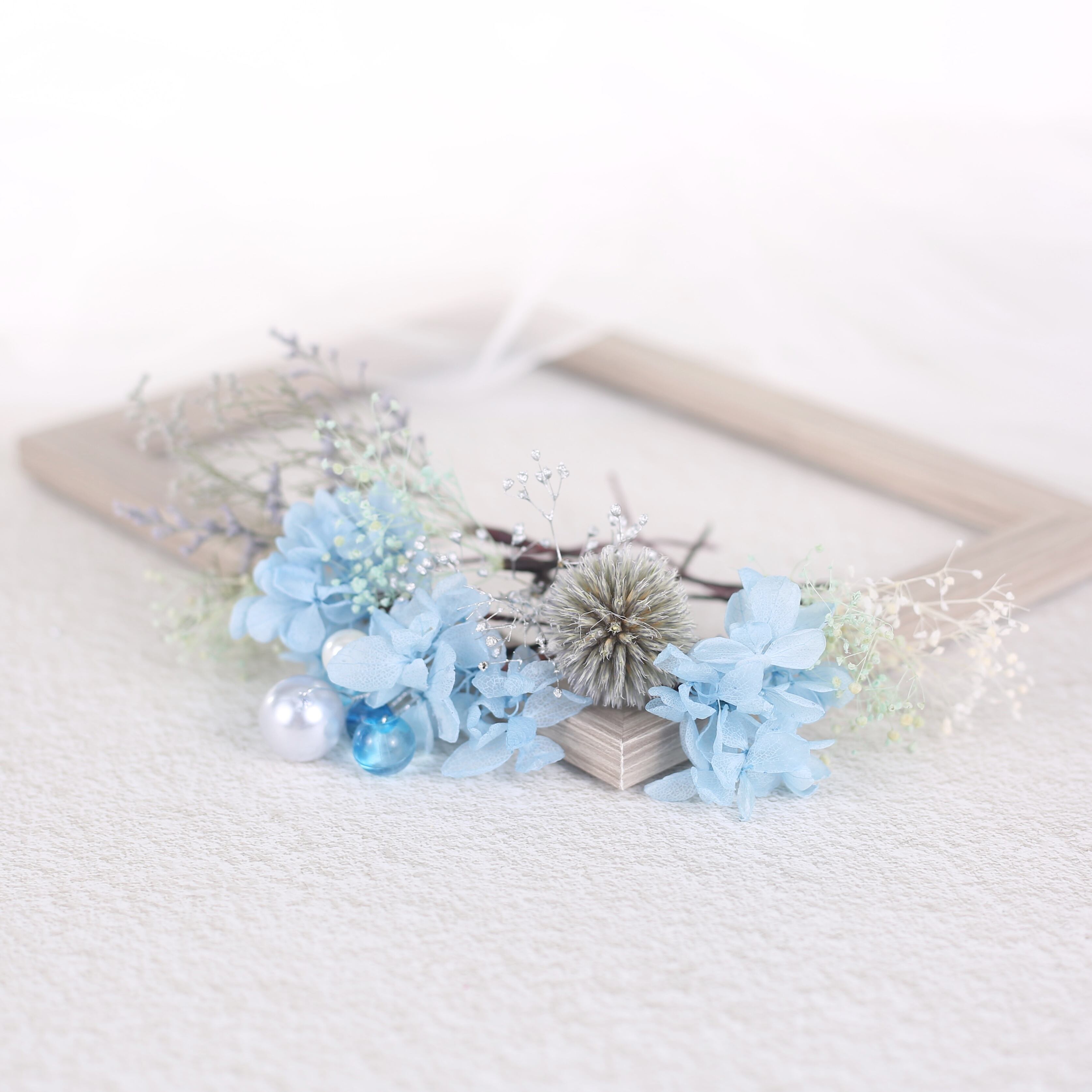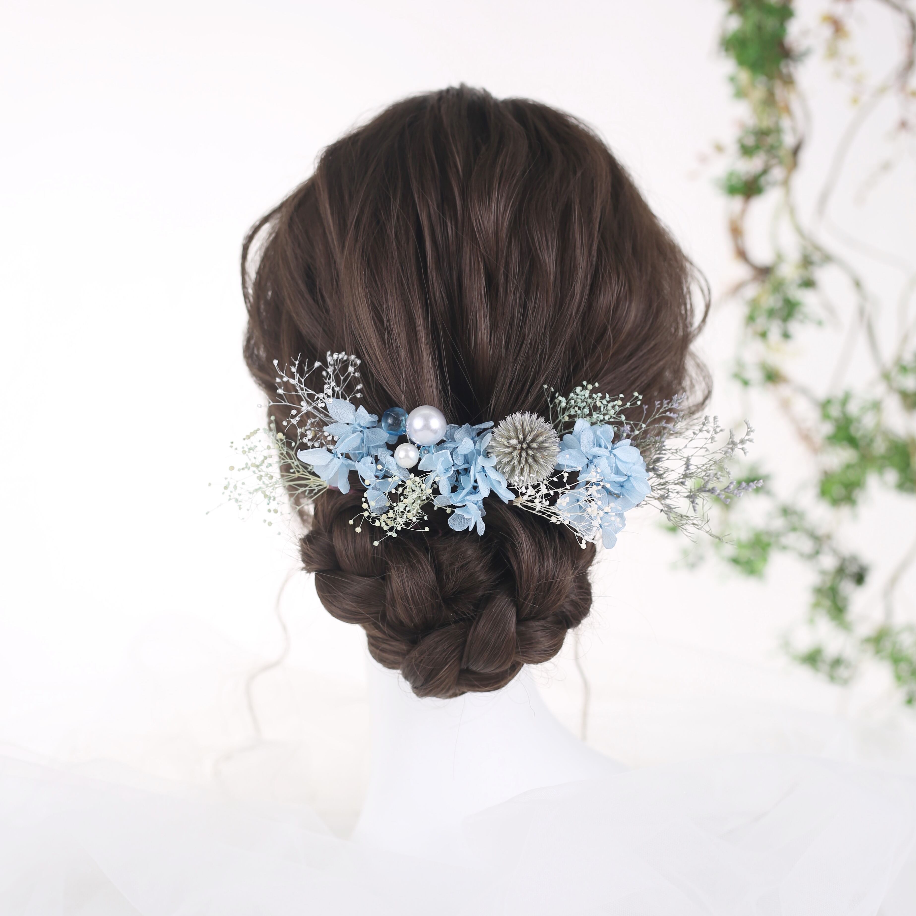 髪飾り 髪飾りセット 成人式 振袖 結婚式 ブライダル ヘッドドレス 卒業式 七五三 前撮り 水色 ブルー あじさい カスミソウ ビジュー パール ドライフラワー K-57 | WA by Petal Prier