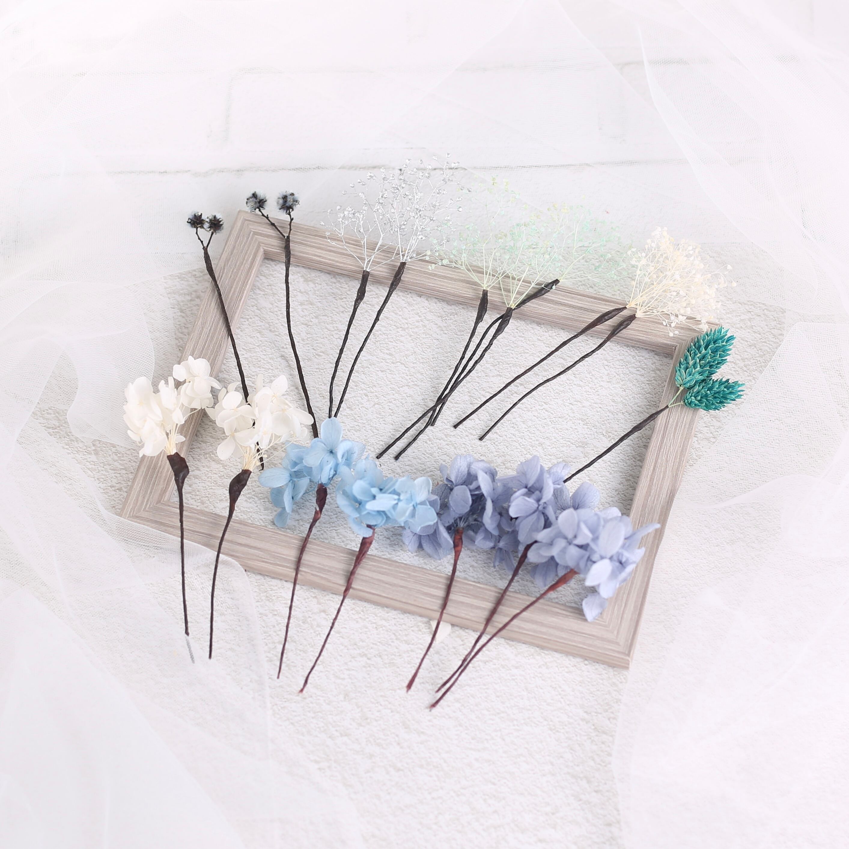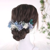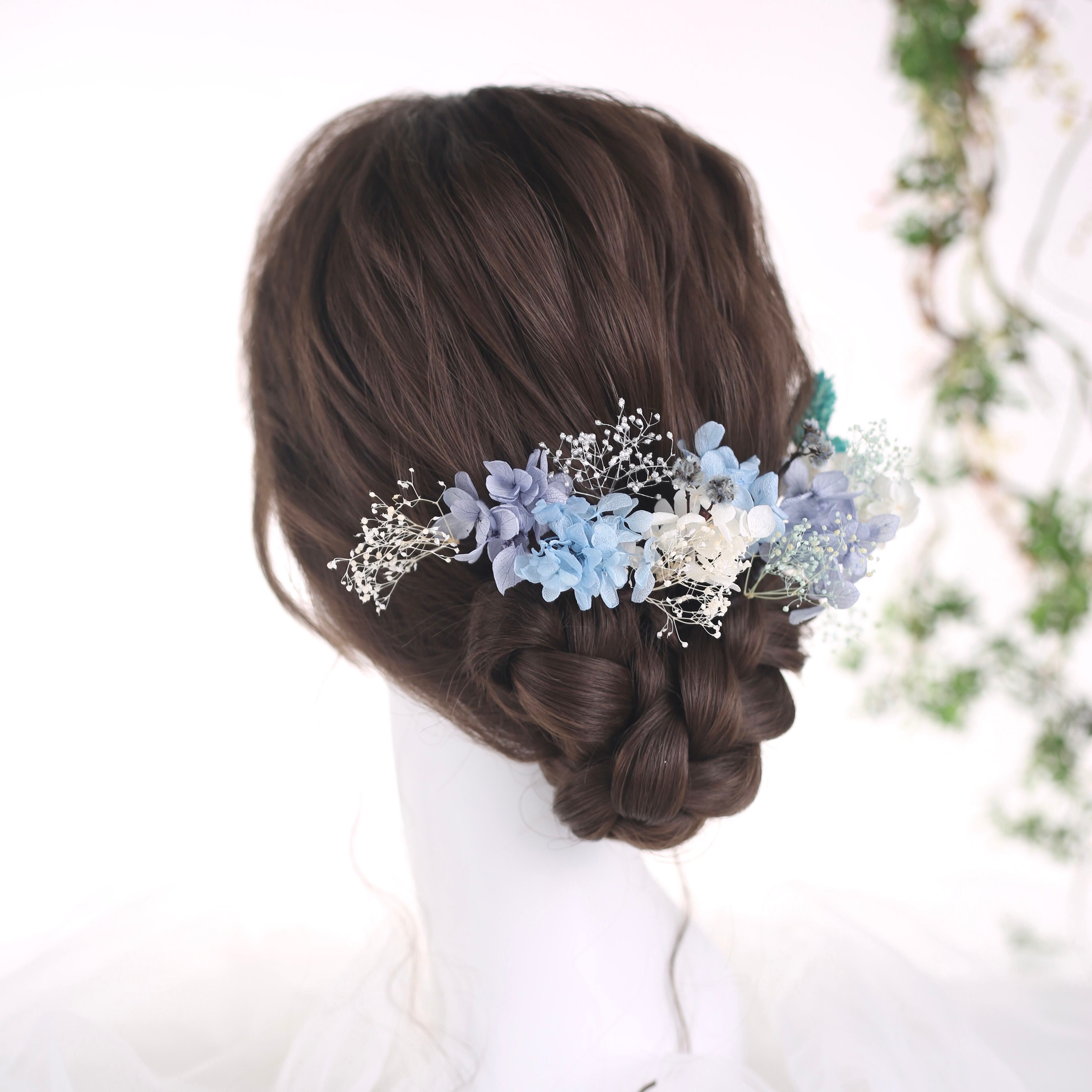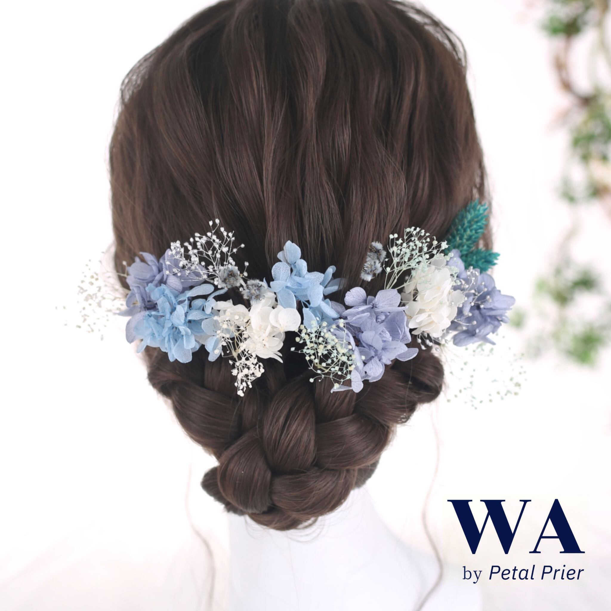 髪飾り 髪飾りセット 成人式 振袖 結婚式 ブライダル ヘッドドレス 卒業式 七五三 前撮り 青 水色 白 ホワイト あじさい カスミソウ ドライフラワー K-69 | WA by Petal Prier