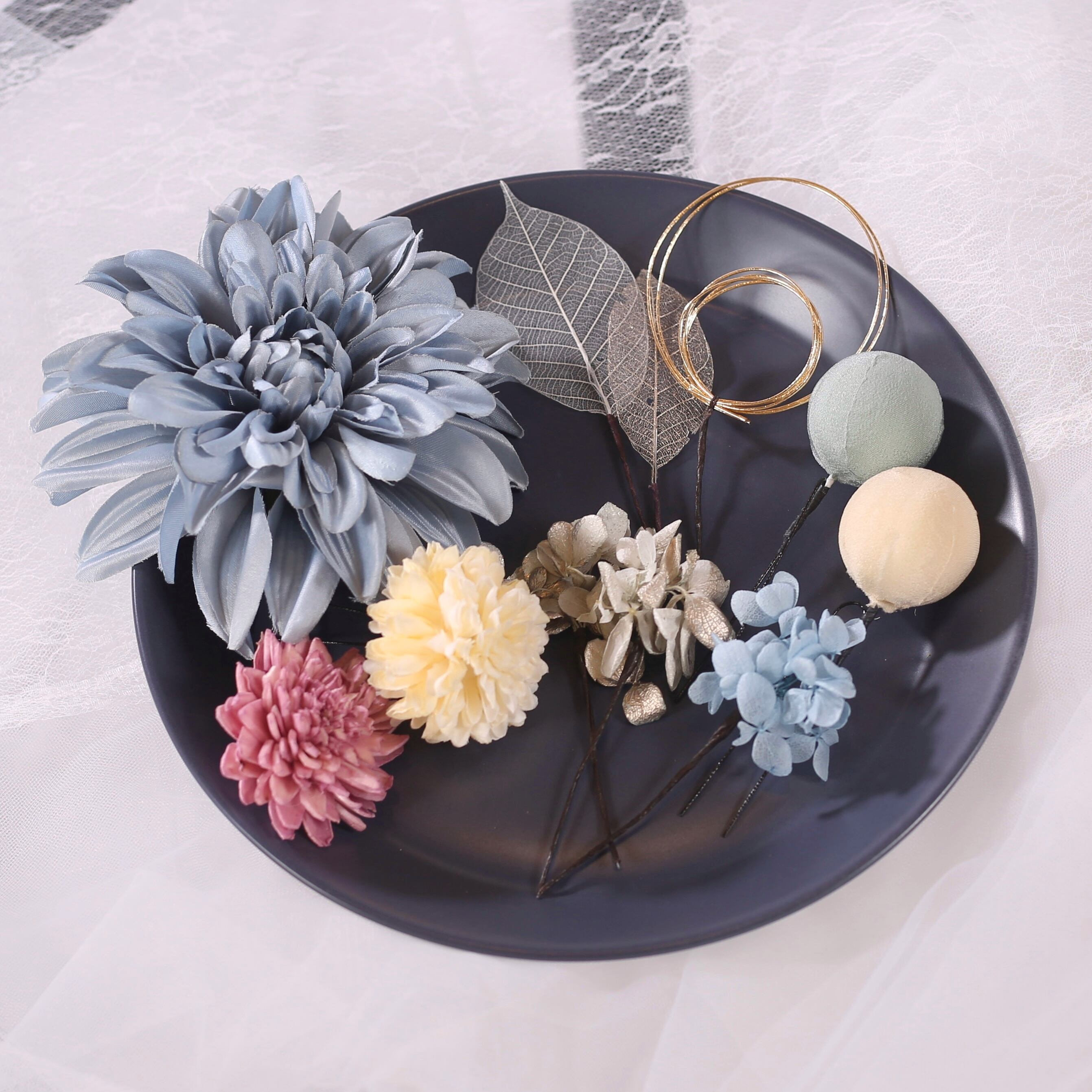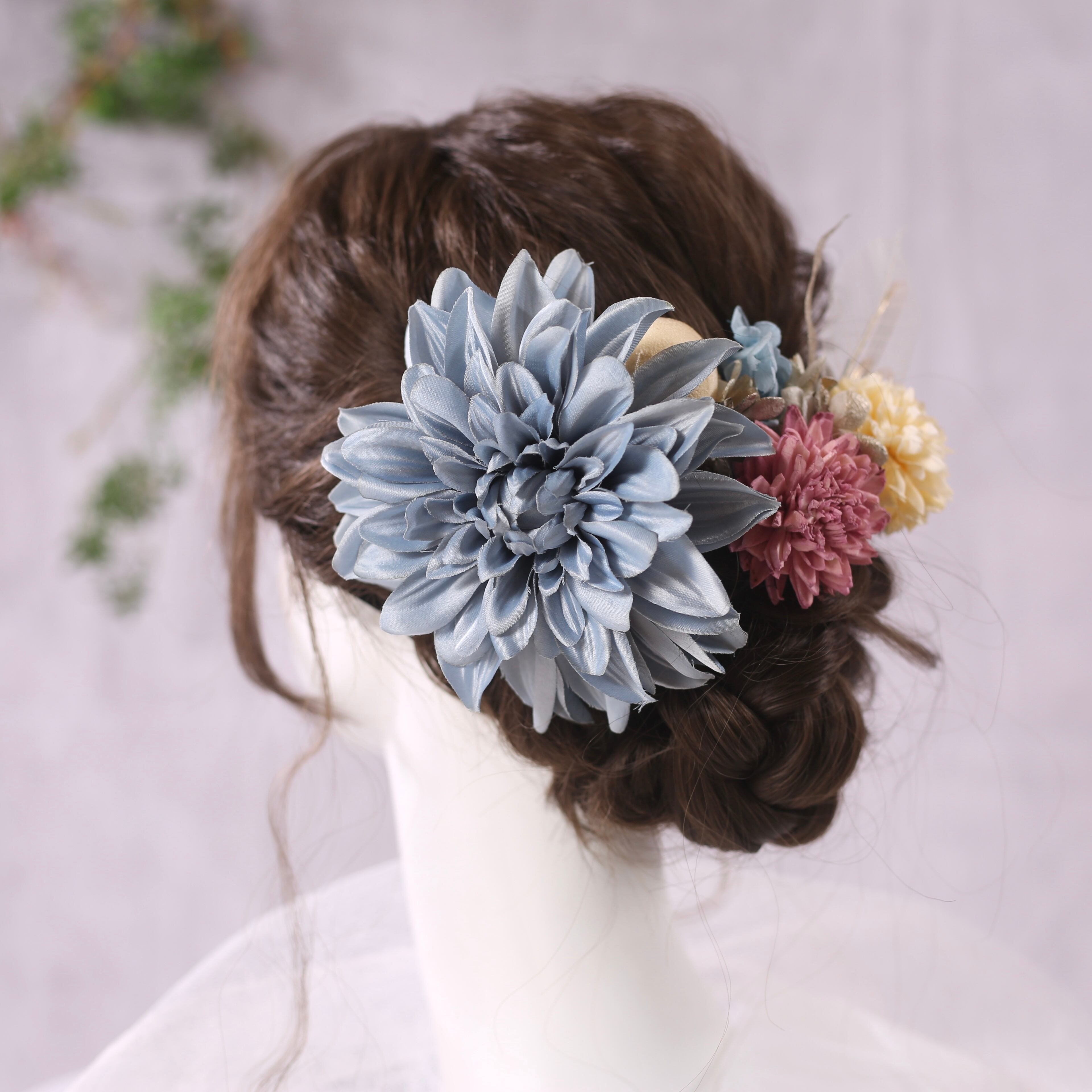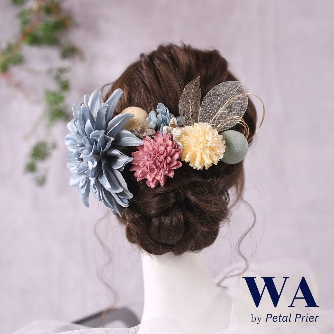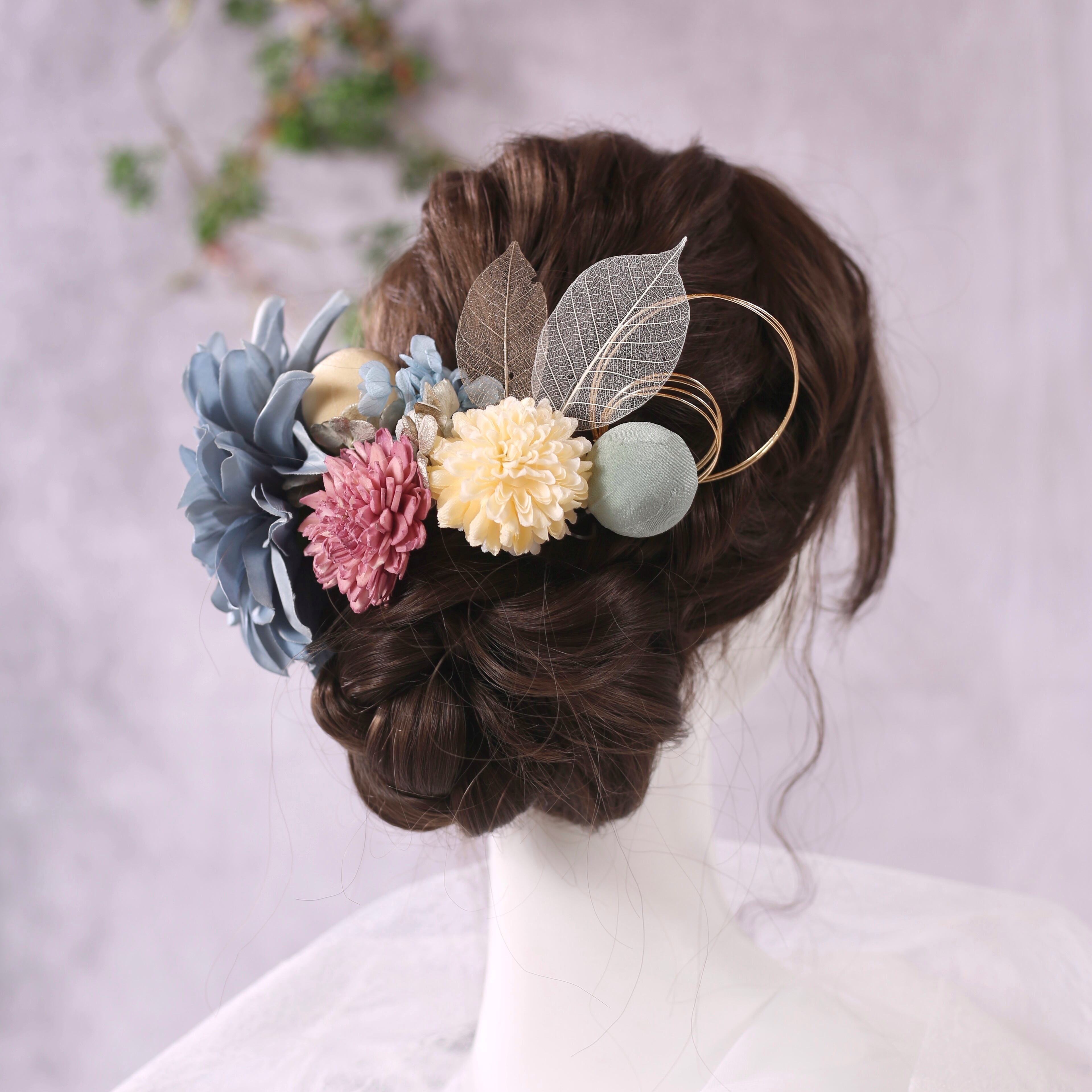 髪飾り 髪飾りセット 成人式 振袖 結婚式 ブライダル ヘッドドレス 卒業式 七五三 前撮り 水色 ブルー ピンク 白 ホワイト ブリザーブドフラワー つまみ細工 水引 リーフ K-89 | WA by Petal Prier