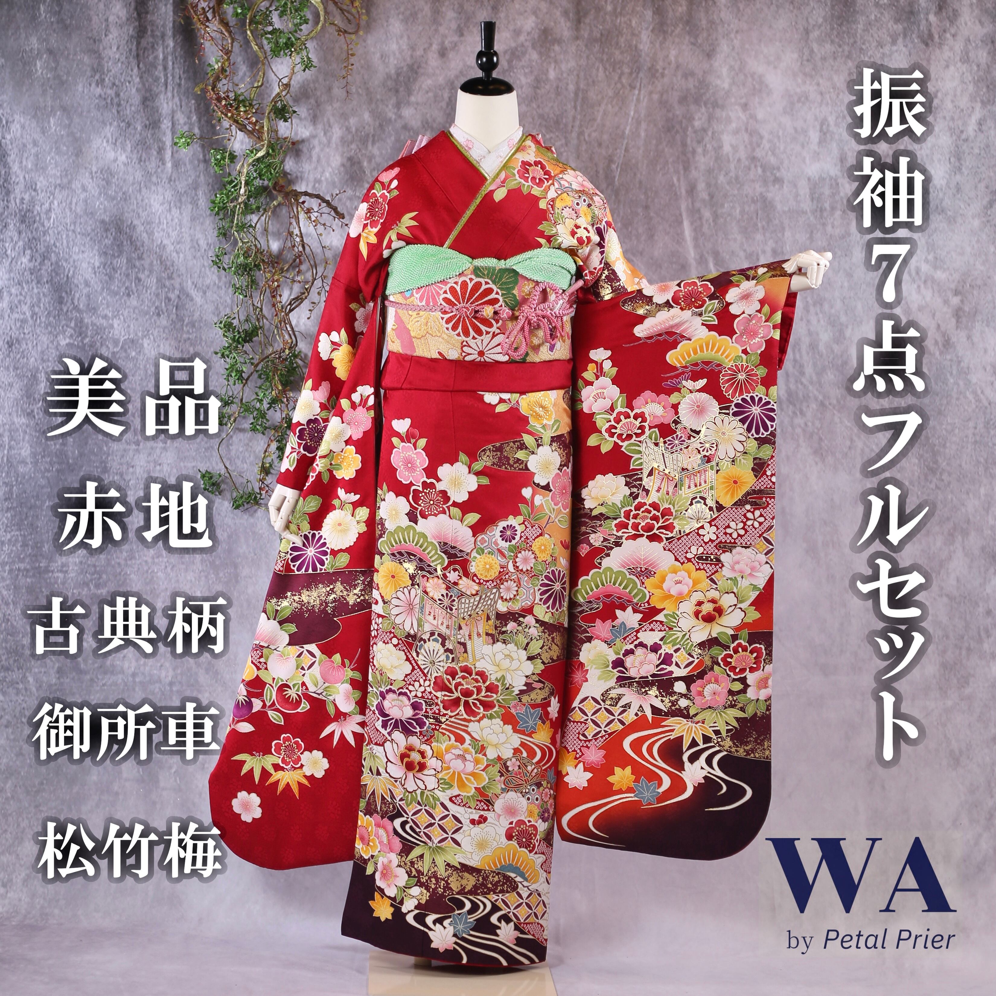 振袖フルセット 振袖セット 振袖 LLサイズ 赤×古典 美品 成人式 着物 晴れ着 7点フルセット F-181