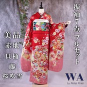 振袖フルセット 振袖セット 振袖 Lサイズ 赤×桜吹雪 美品 成人式 着物 晴れ着 7点フルセット F-204