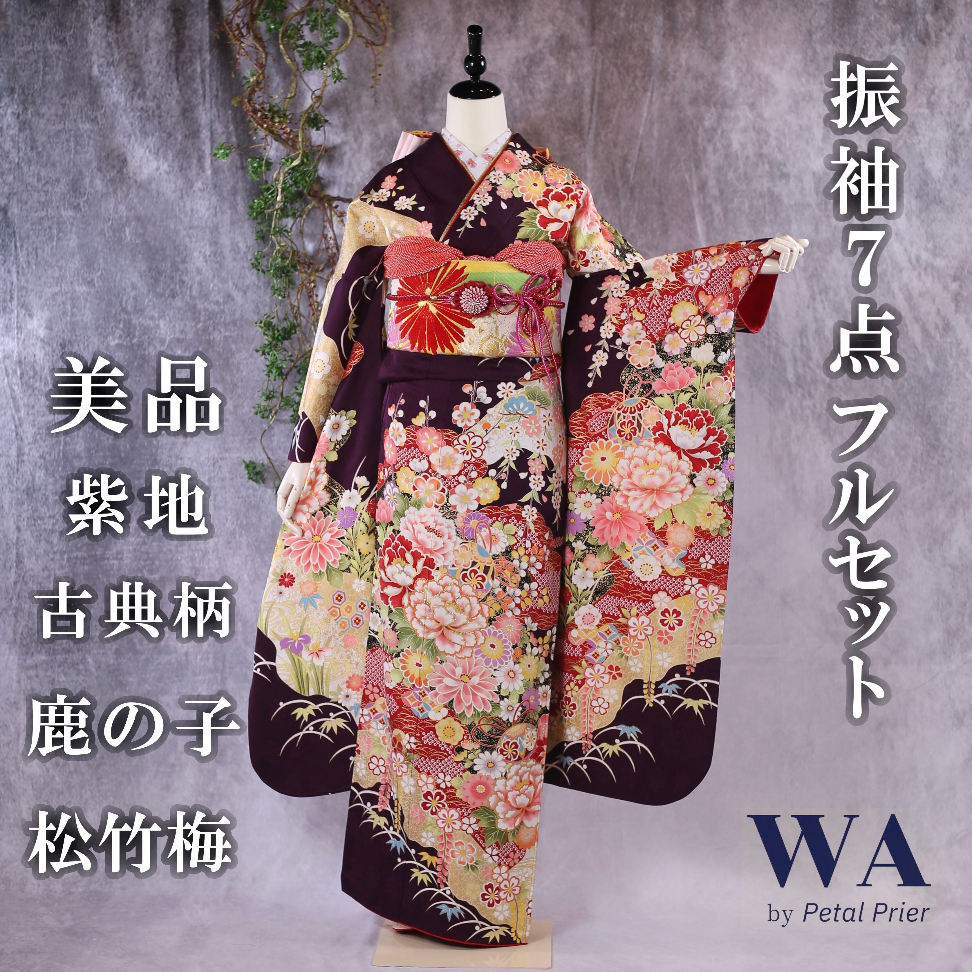 振袖フルセット 振袖セット 振袖 Lサイズ 紫×古典 美品 成人式 着物 晴れ着 7点フルセット F-207