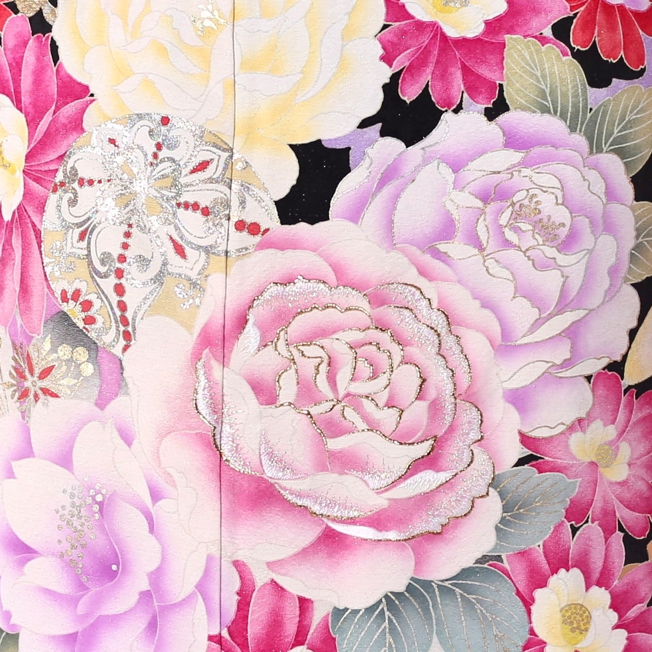 黒地に大胆な薔薇が映える振袖です。