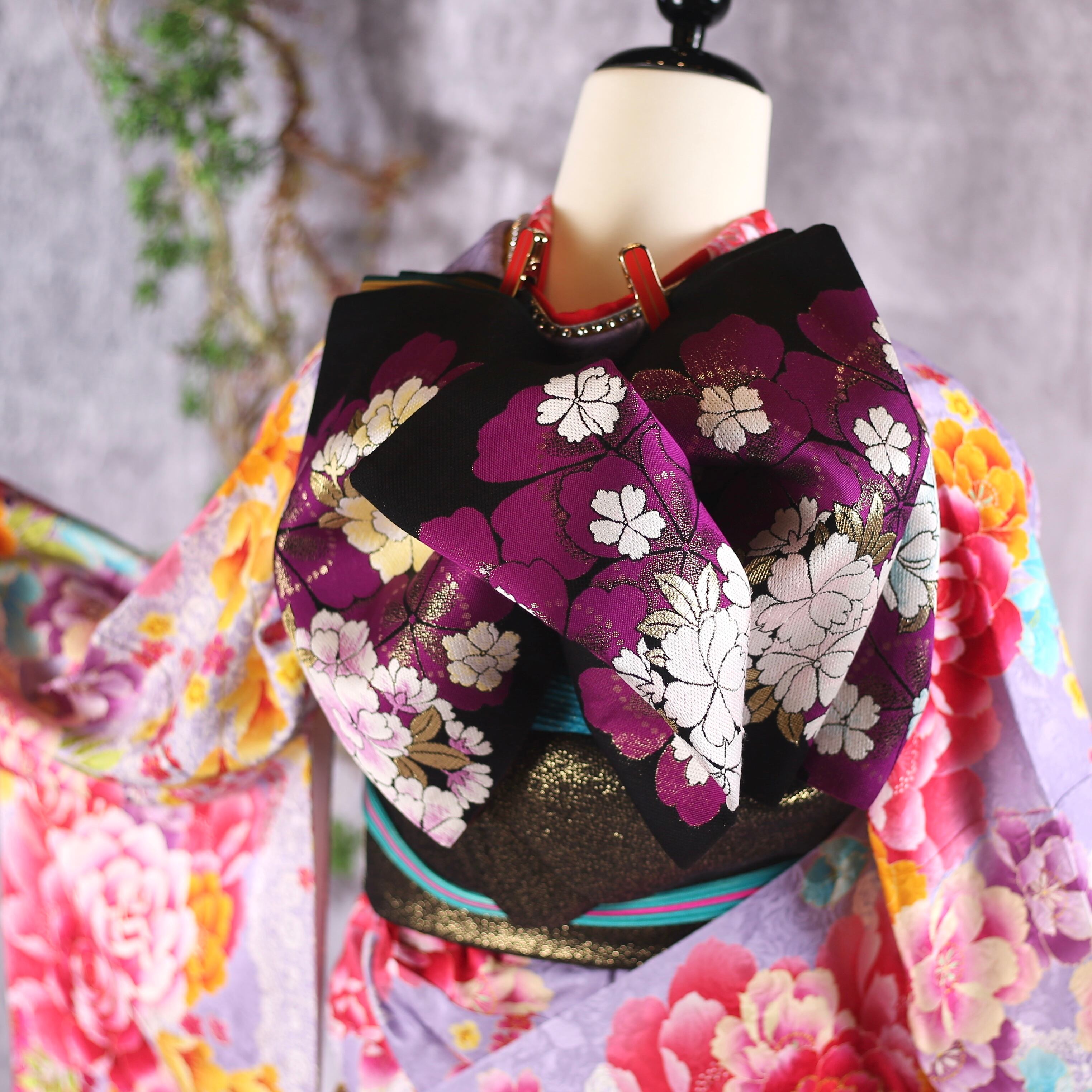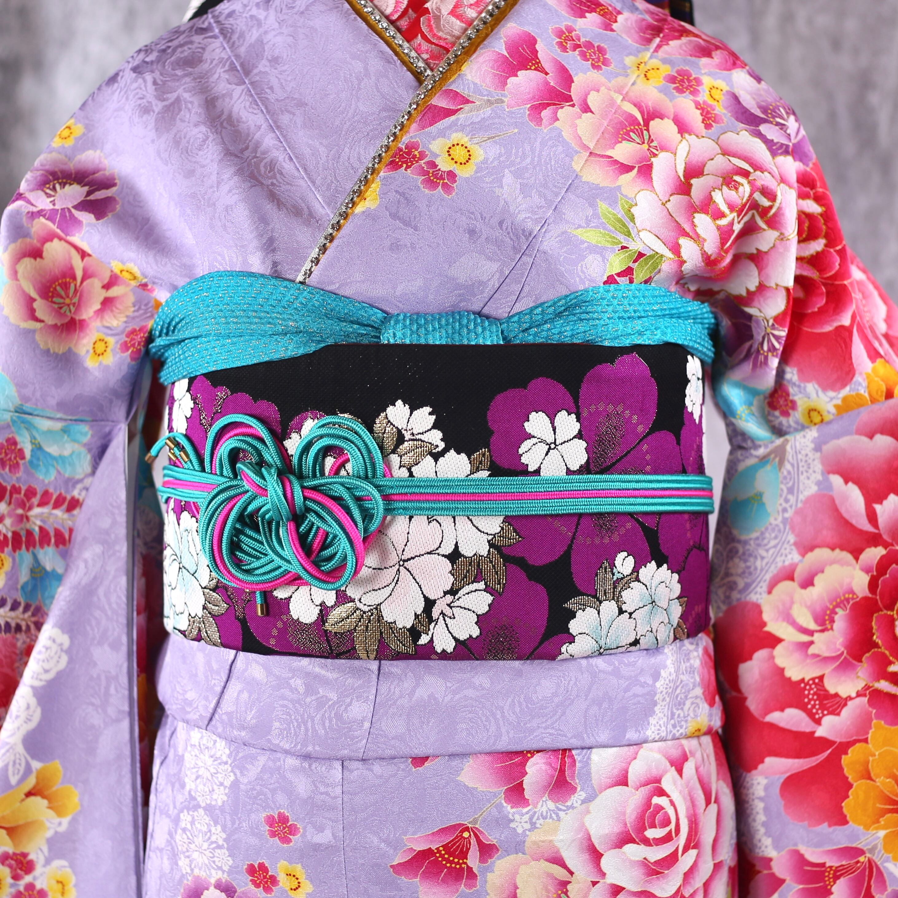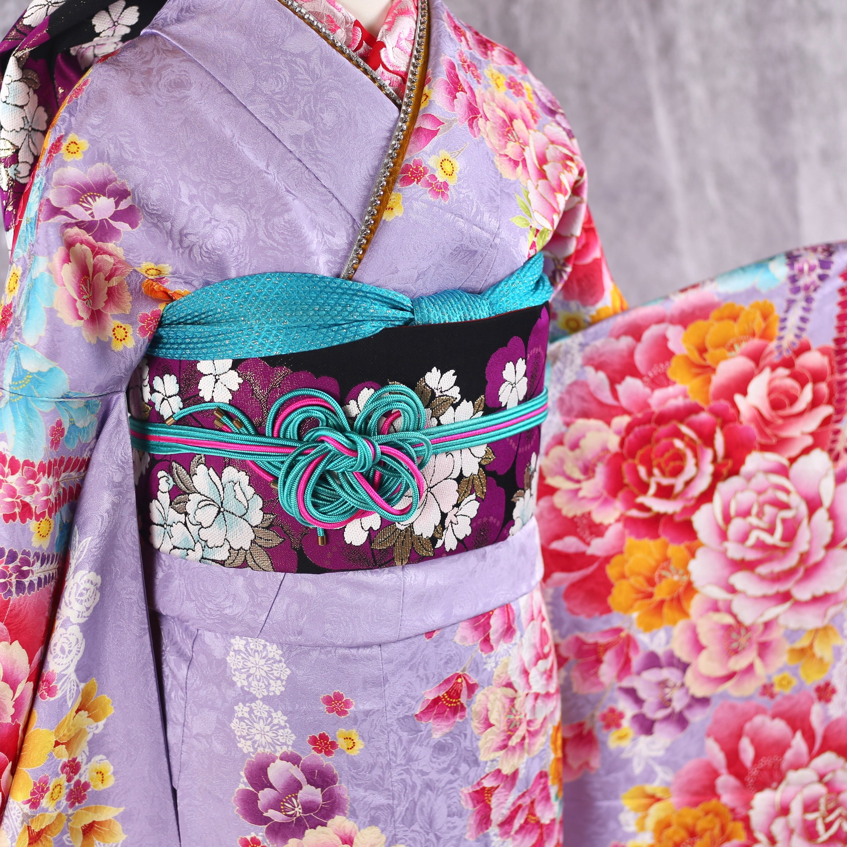 振袖フルセット 振袖セット 振袖 Lサイズ 薄紫×バラ 美品 成人式 着物 晴れ着 6点セット KFN-60