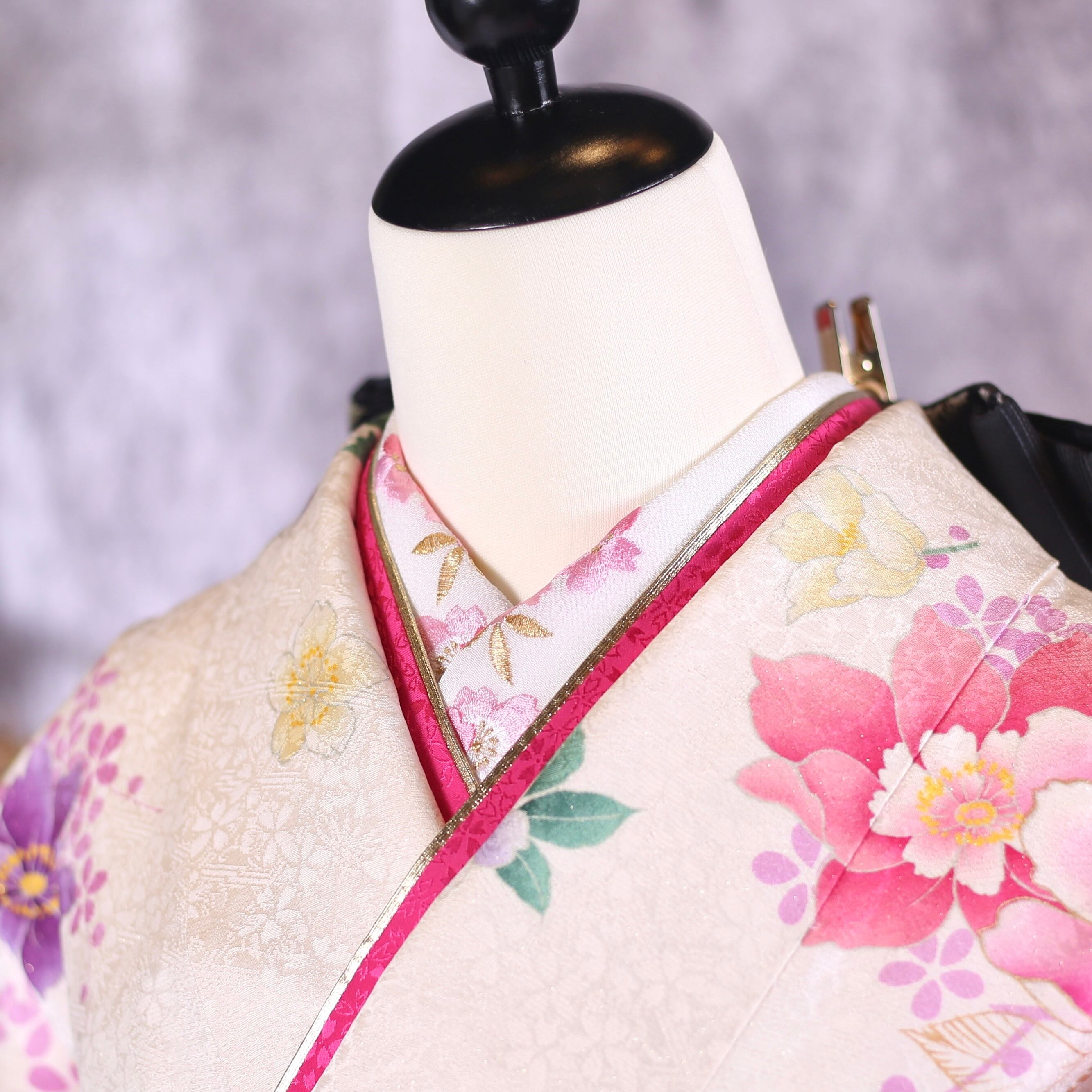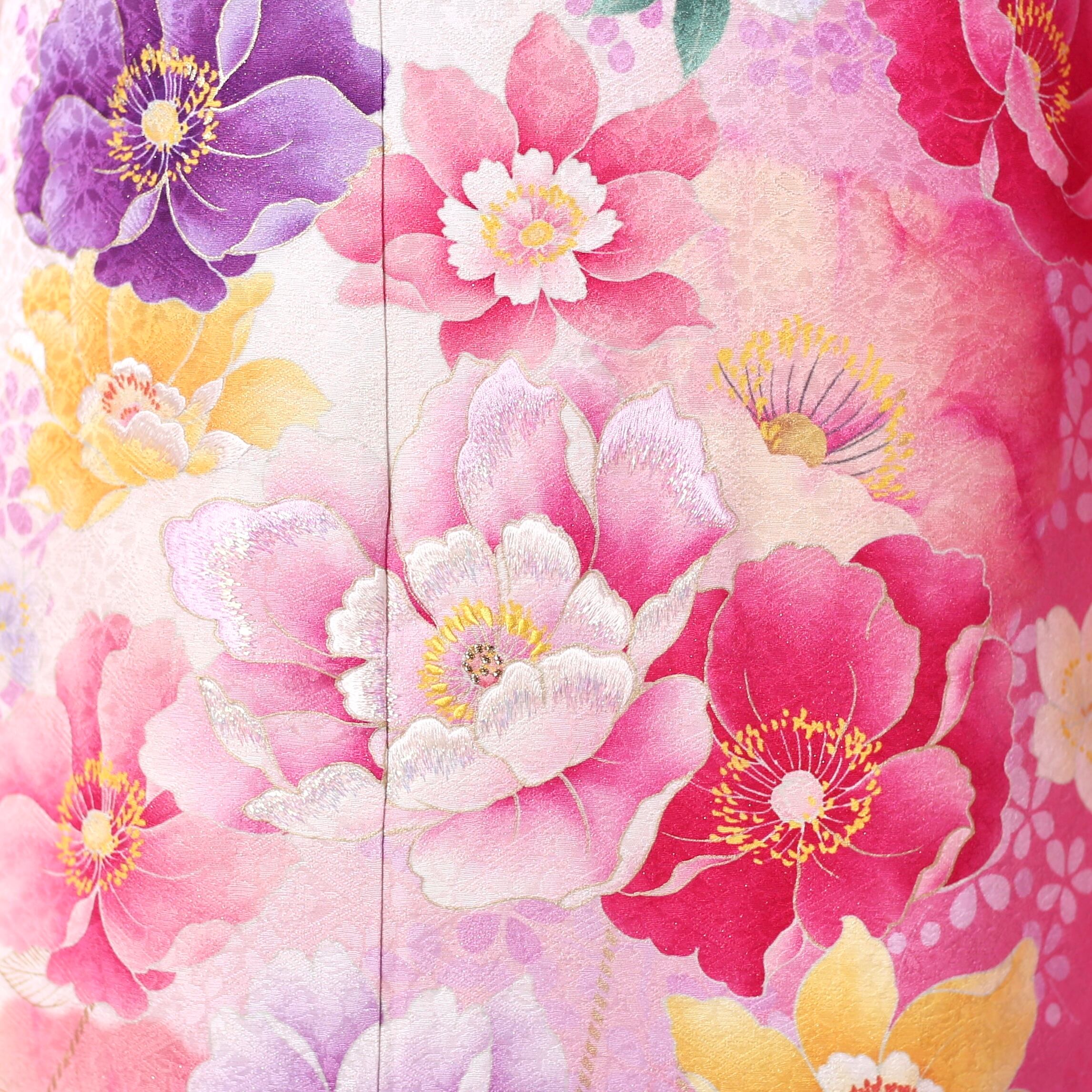 白地に大胆な牡丹柄が印象的なエレガント振袖です。